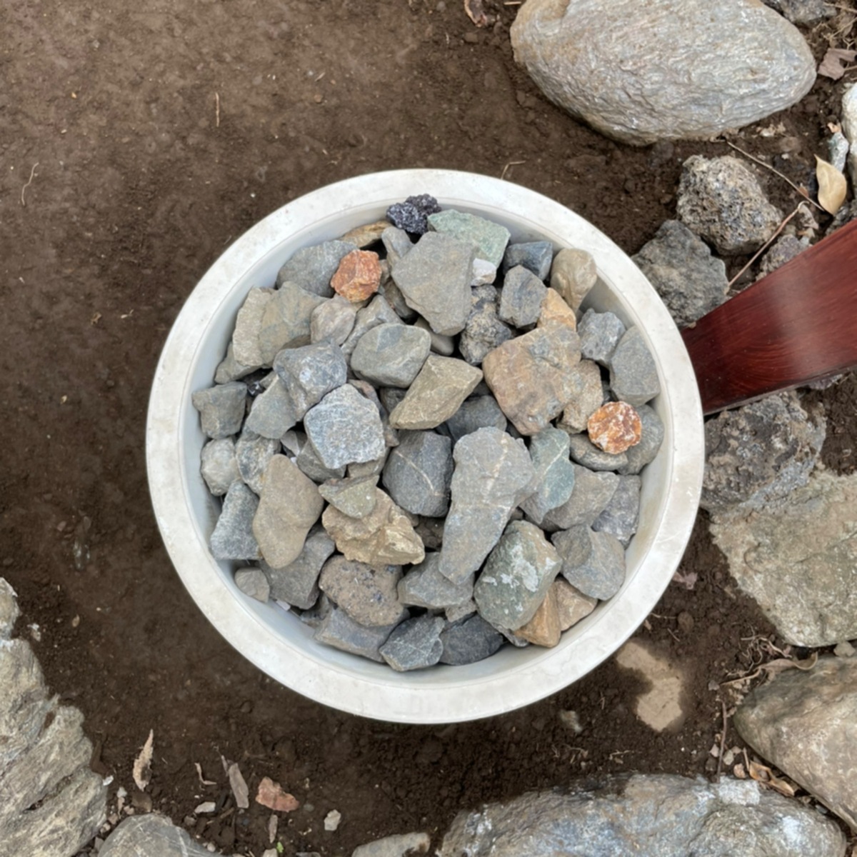 敷地内のあちこちを整地する時、フルイにかけて出た小石です。簡単に水洗いしてます。