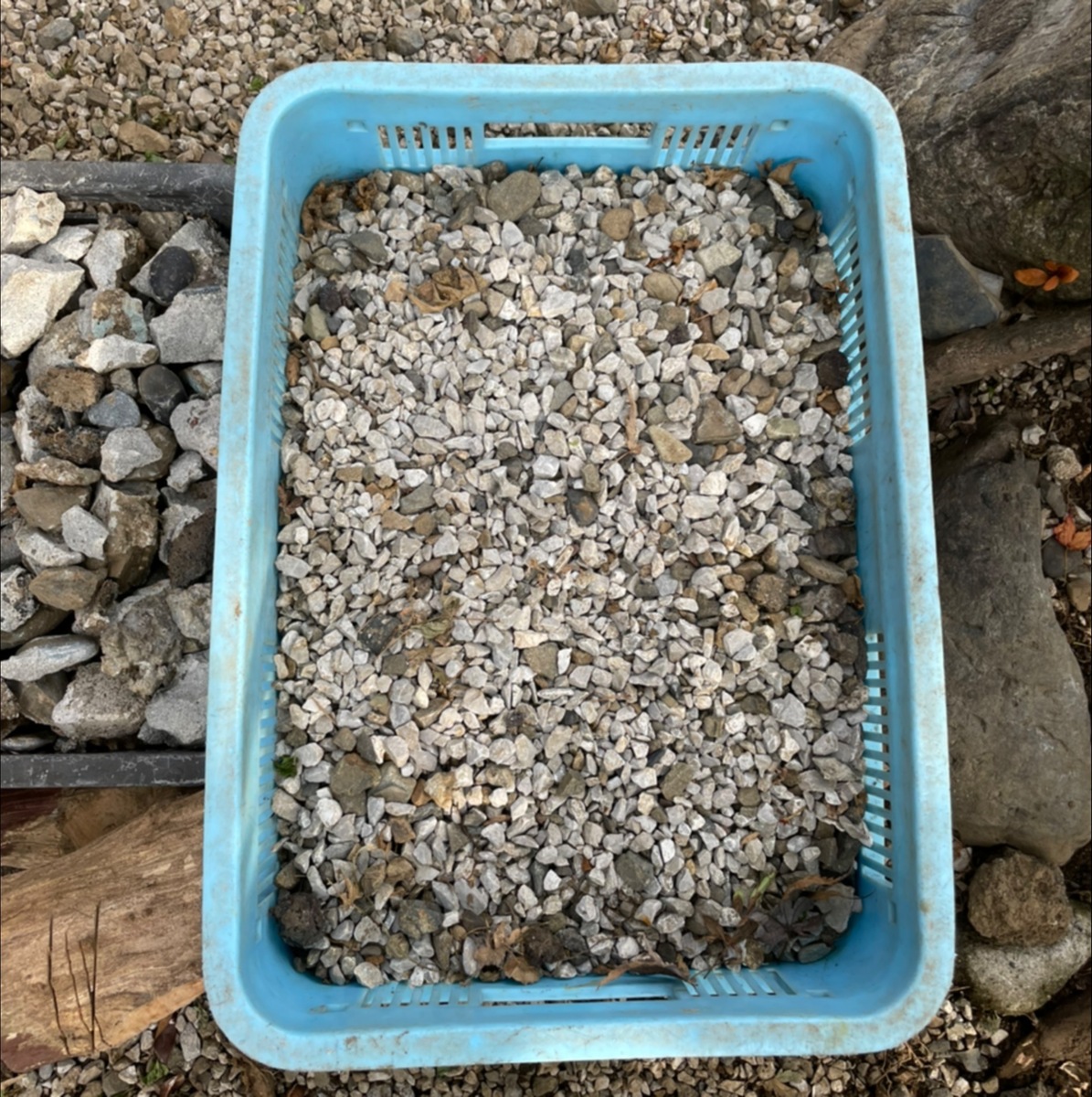 以前、芝を剥がした時にでた小砂利を水洗いして一部を保管してあるモノです。