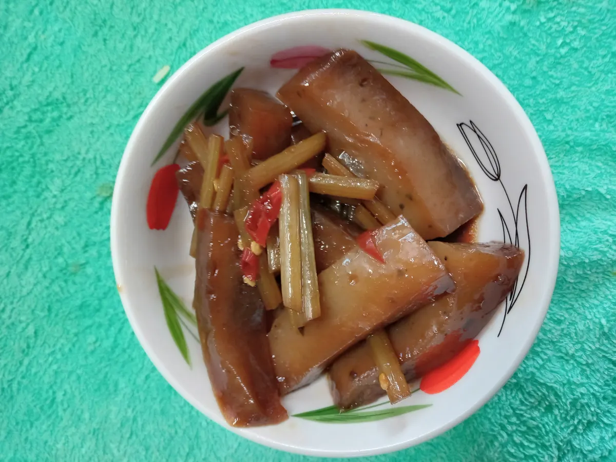 トップ > クッキング レシピ > 料理 > フキと手作りこんにゃくの煮物 お花畑 2025/11/17 09:50 フキと手作りこんにゃくの煮物 ■材料 ふき、こんにゃく、すき焼きのタレ、鷹の爪1本、 ■作り方 ふきをまな板にのせピーラーで薄皮をむく、等分に切る。ふきを油で炒めしんなりしたらこんにゃく、鷹の爪をはさめで輪切りに切りながらいれる。すきやきのたれ200cc入れて弱火で煮る。 ■工夫ポイント 弱火でコトコト煮詰めないと焦げてしまう。 ■はい出来上がり 鷹の爪1本いれるとピリ辛甘になり美味しいです 小さい秋見つけた いいね 共有する 共有する X LINE リンクをコピー コメントする 1 件の返信 (新着順) ミュートしたユーザーの投稿です。 投稿を表示 toshi 2025/11/17 09:56 こういうのがいいですね とても美味しそうですね😊 いいね 返信する