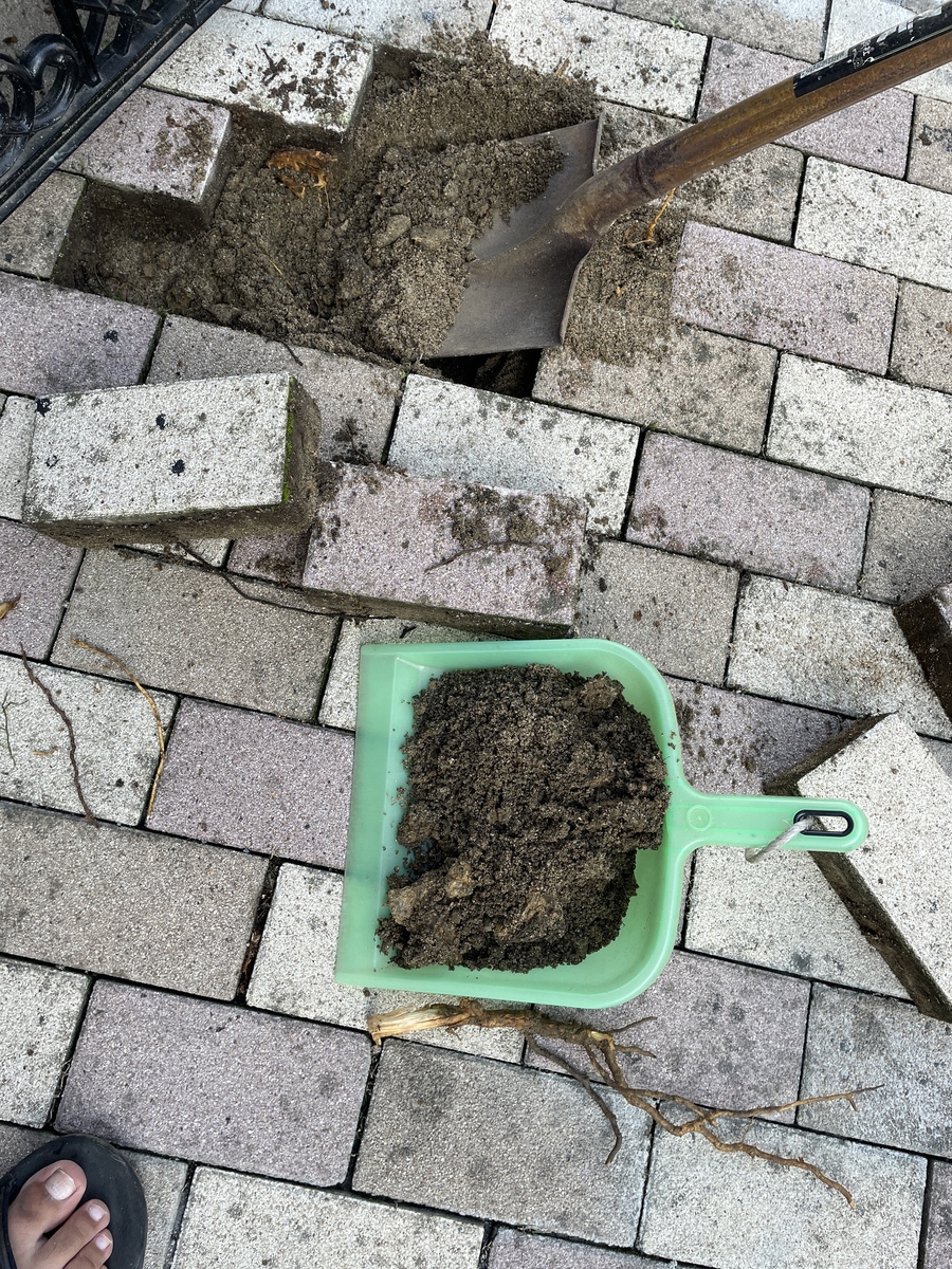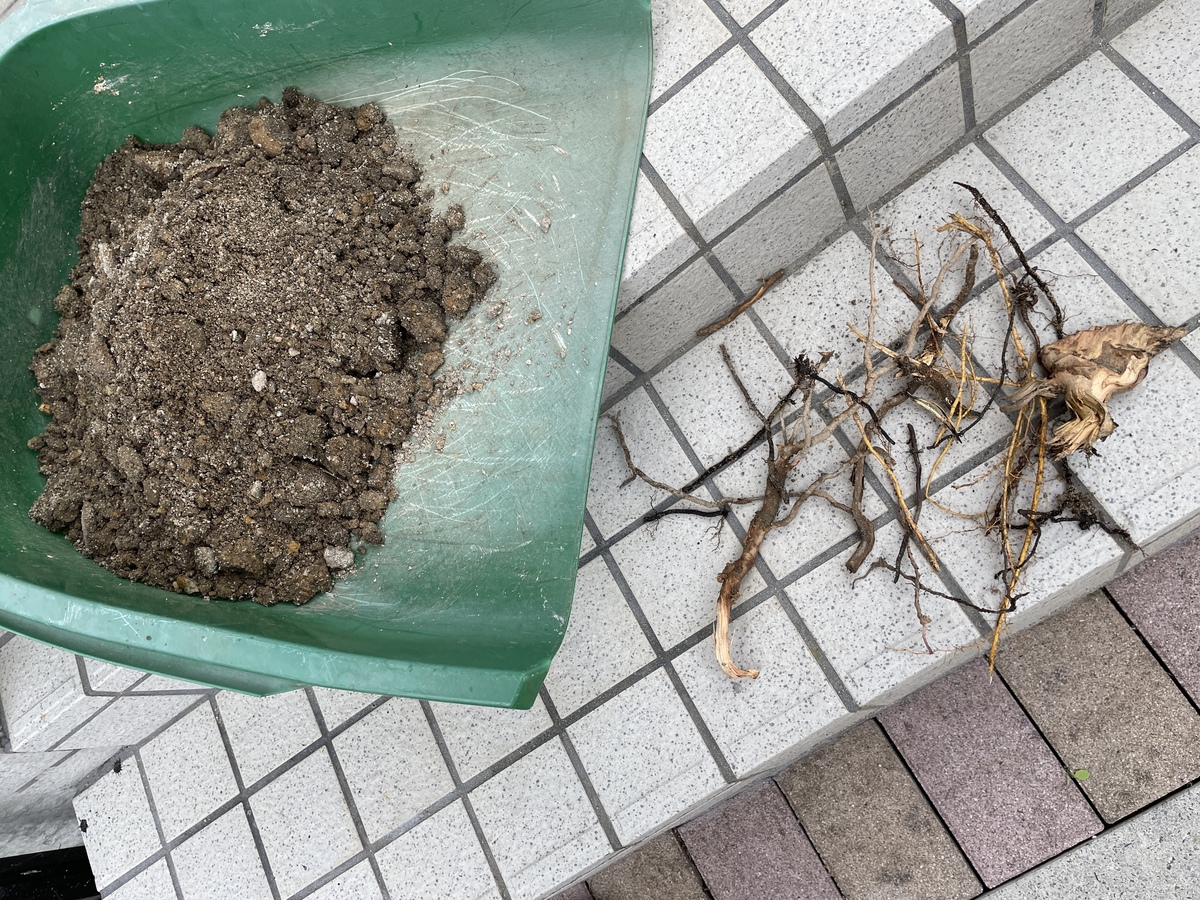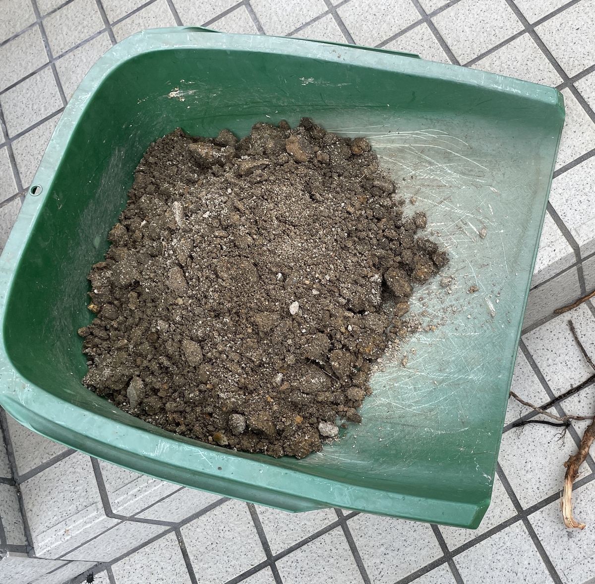 土を撤去するもなんかチリトリでは足らない気がする。😆