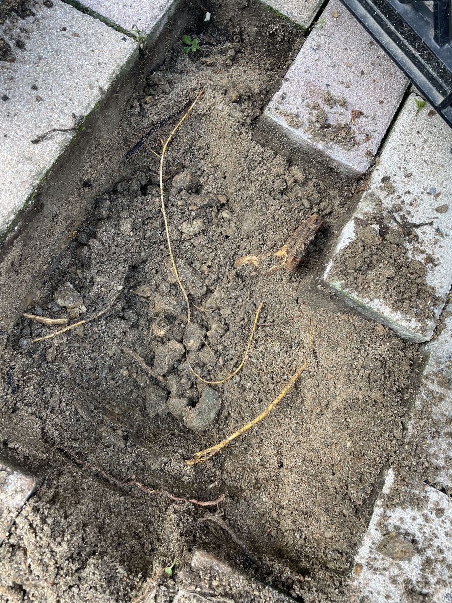 おまけにタイルに沿って根を切ってたら門灯が付かなくなり😩 電線やっちまいました。