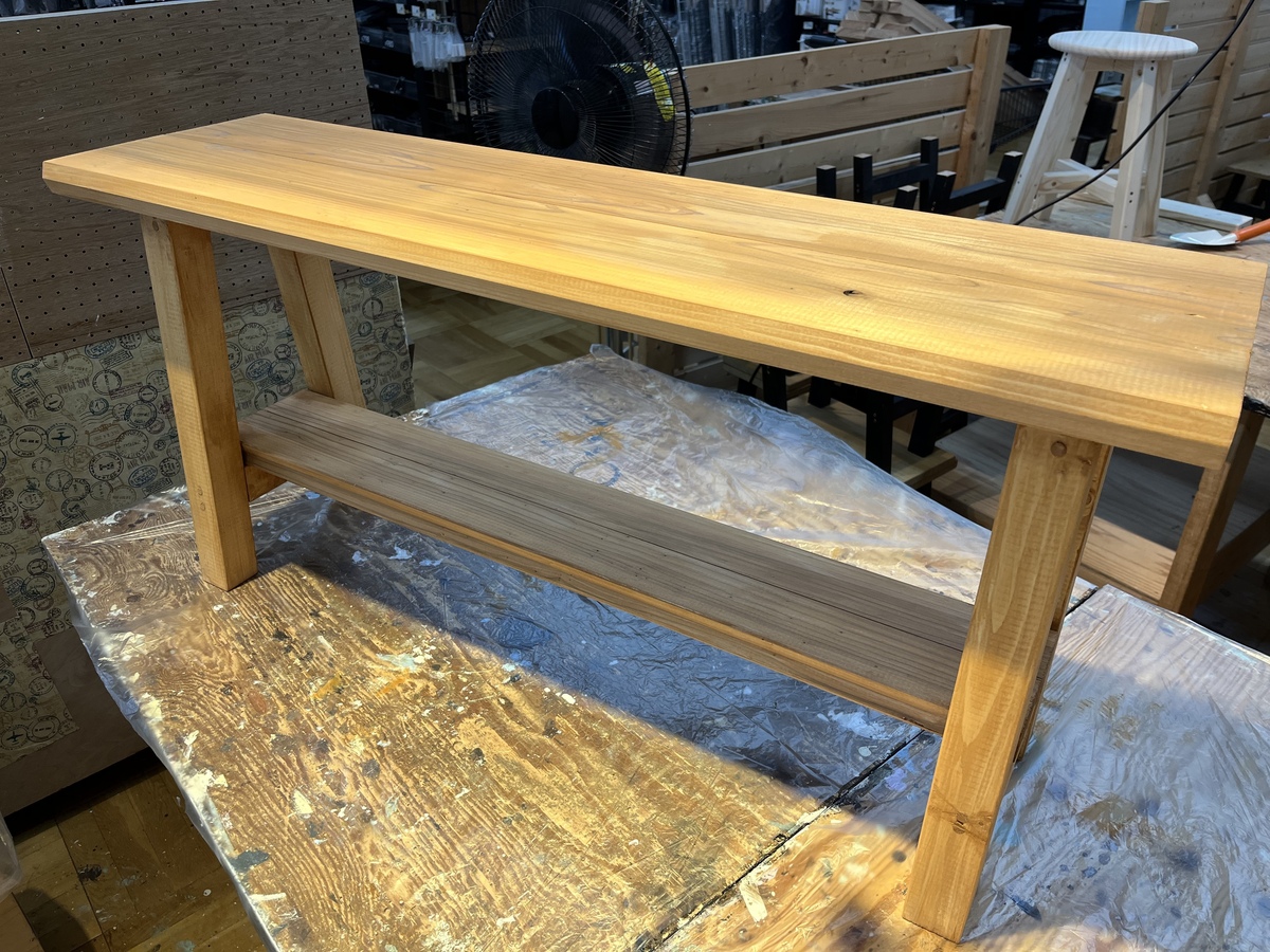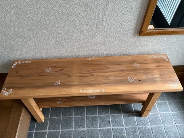 玄関にマッチした、ステキなカフェ板ベンチですね🥰💕