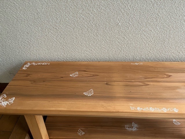 投稿を表示可愛いステンシルを チョイ❗️と入れるだけで、とっても素敵なベンチになりましたね!