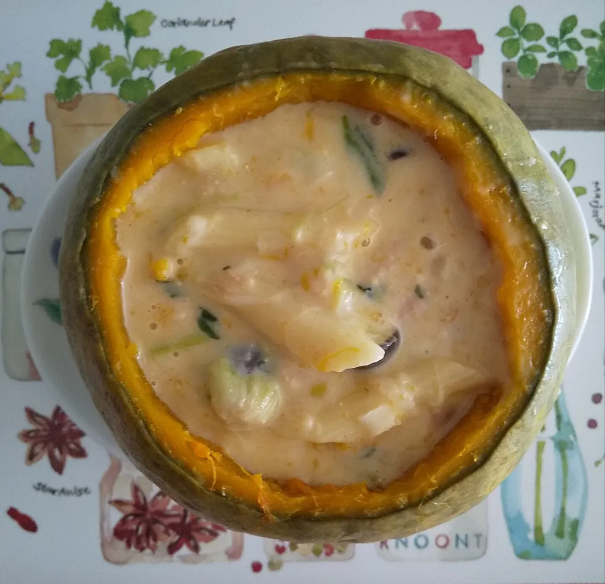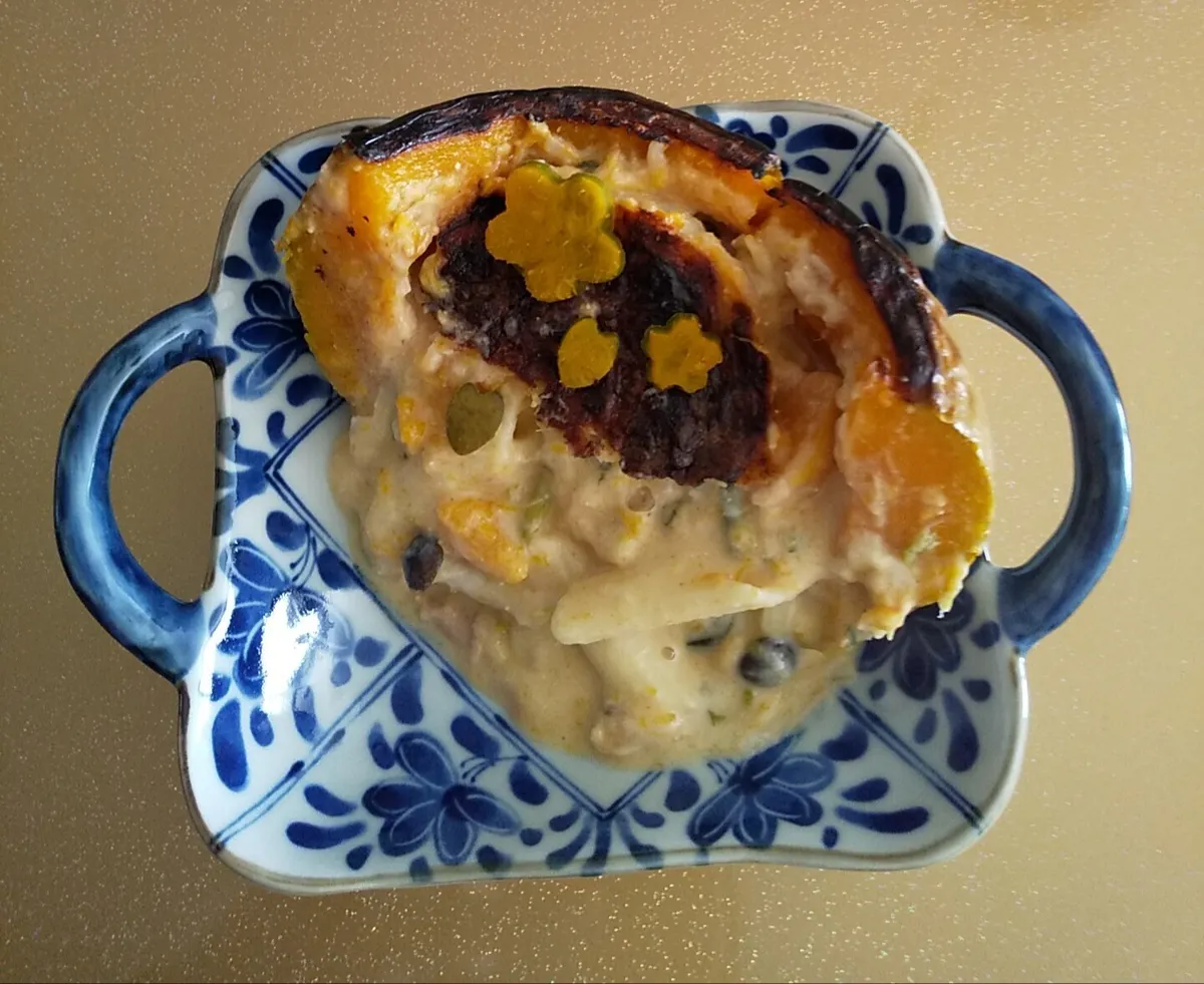 投稿を表示カボチャ🎃の器にグラタン✨とても美味しそうですね🥰