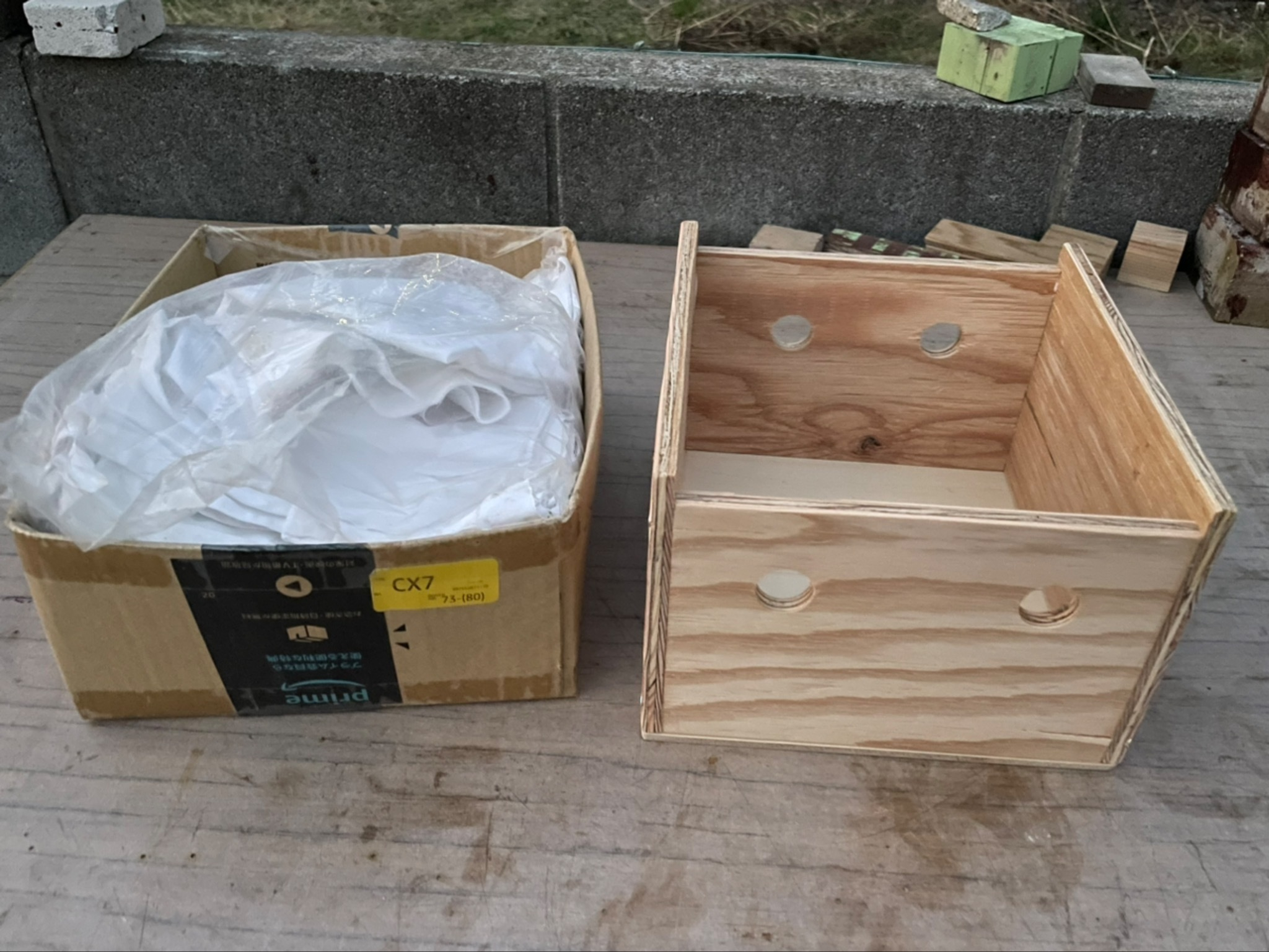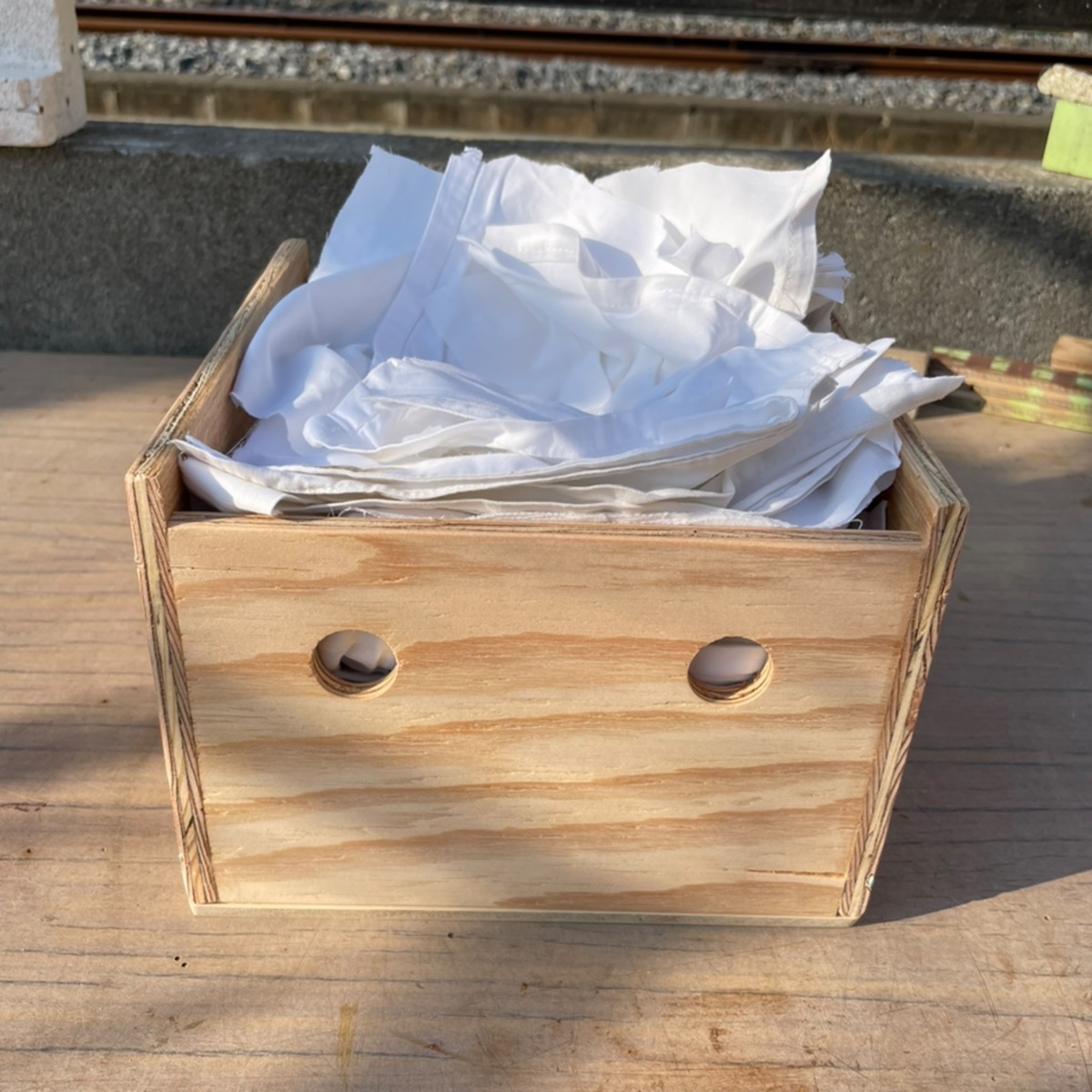 ホームセンターで398円とかで売ってるリサイクル布ウェス、試しに買ってみると結構な量が入ってまして、その置き場に難儀してました。とりあえず、Amazon段ボールに突っ込んでましたが、置きたい場所に対して段ボール箱が大きくて思うようにスペースが活かせない。