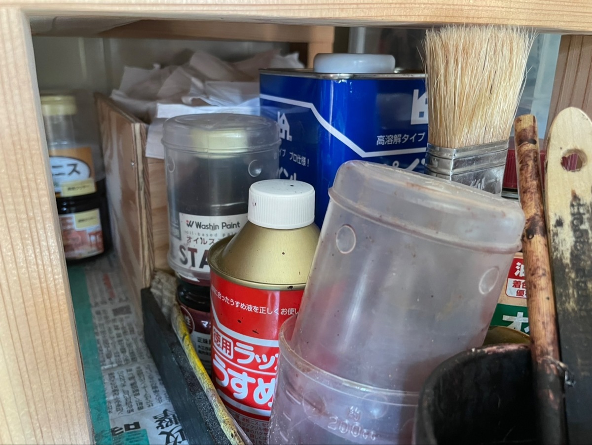 布ウェスの使用頻度を考えた時、一発で手に取れる必要もないので、このようになりました。