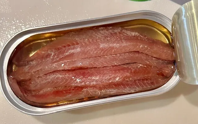 アンチョビってこの形の缶詰がほとんどなんだけど、値段によって中身のレベルにかなり差があるんですよ。