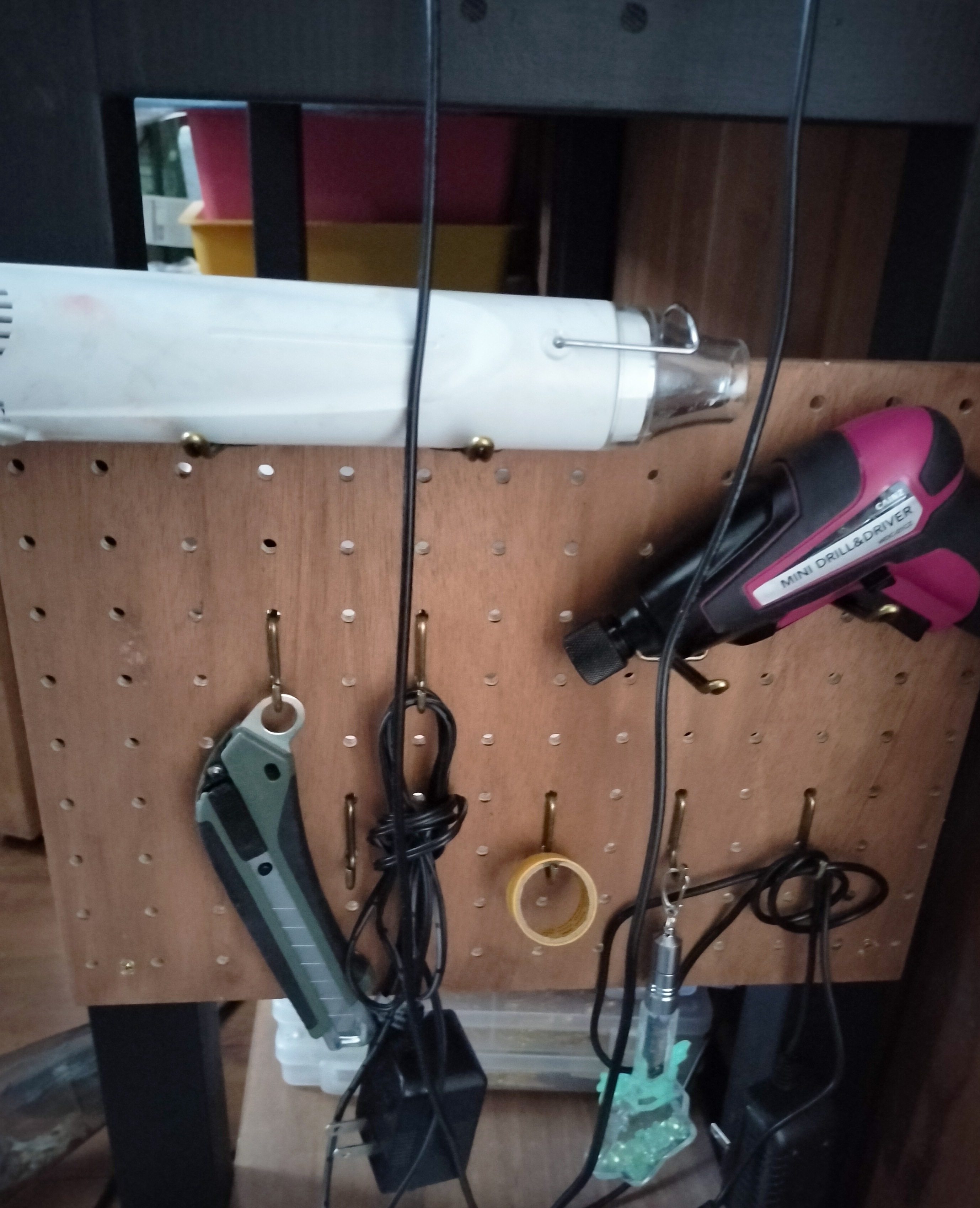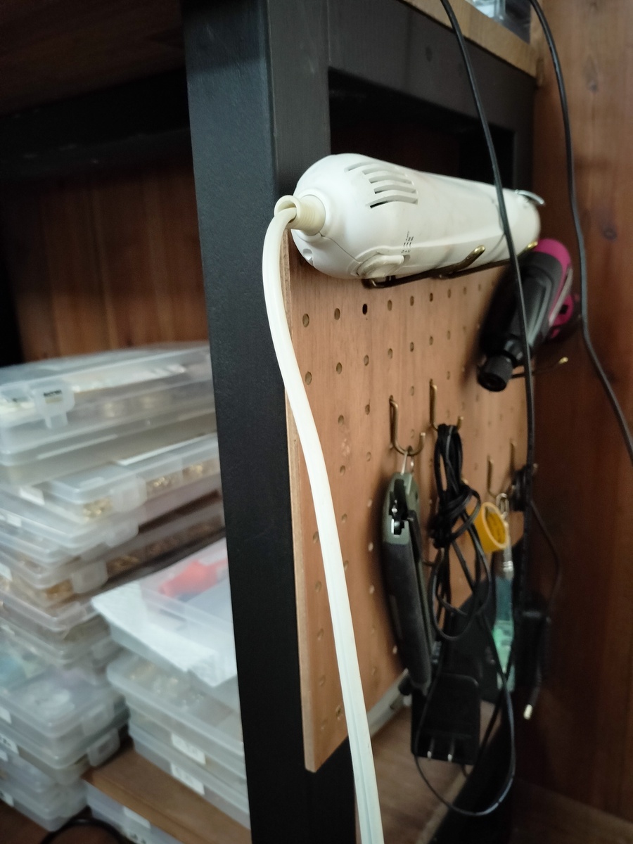 トップ > DIY > インテリア > 去年作ったテーブルをカスタマイズ たま 2024/06/17 15:03 去年作ったテーブルをカスタマイズ 作ったものの、テーブルの上がゴチャつき過ぎて困ってたのですが(自分のせいやん)、脚にちょうど良さそうな端材を見つけ、幅を合わせてノコギリでカットしました。 資材のごたつき具合よレジン用エンボスヒーターに、ミニドライバー、ハサミやカッターと無くしがちな道具や大きめの道具を掛けられるようにしてます😊 これで作業効率アップ!!!…するといいなぁ(笑) いいね 共有する 共有する X LINE リンクをコピー コメントする 0 件の返信 (新着順)