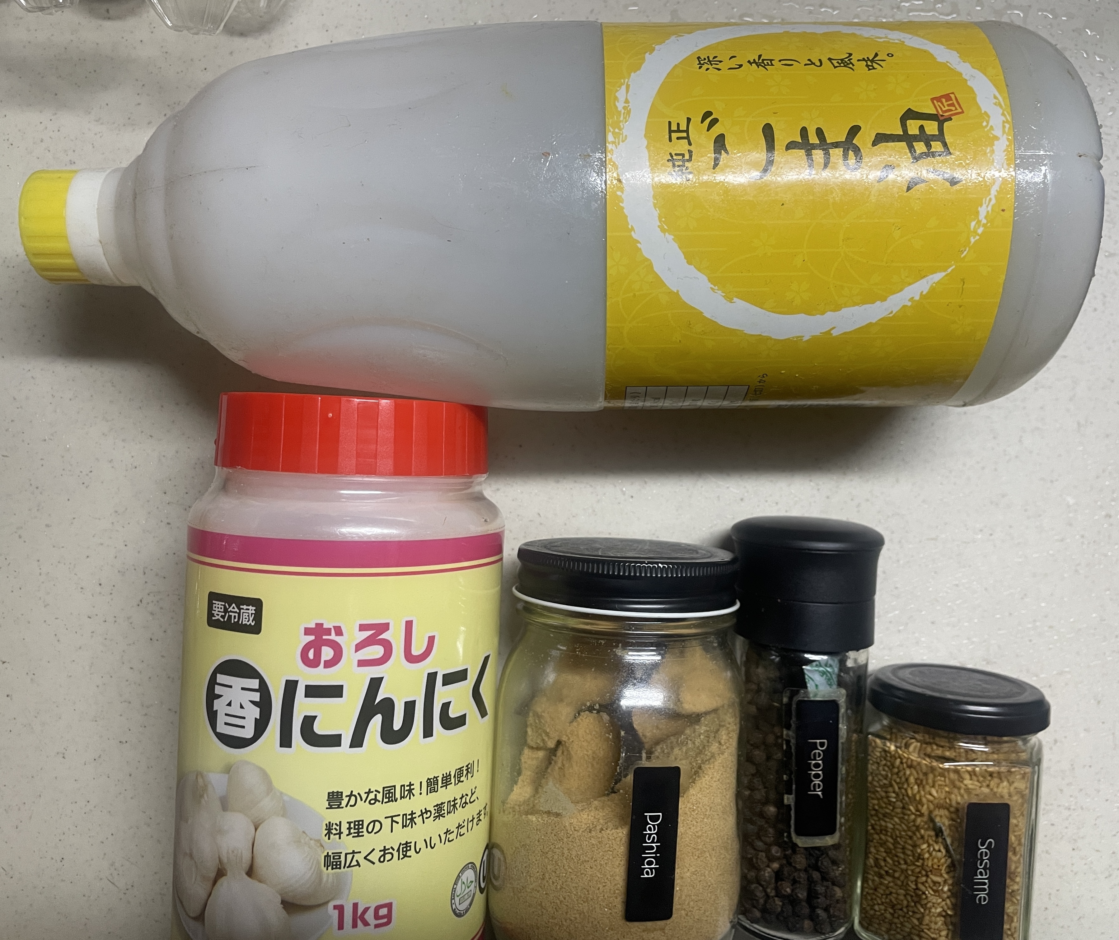 ①胡麻油・ニンニク・ダシダ・ミル挽き黒胡椒・金胡麻✨