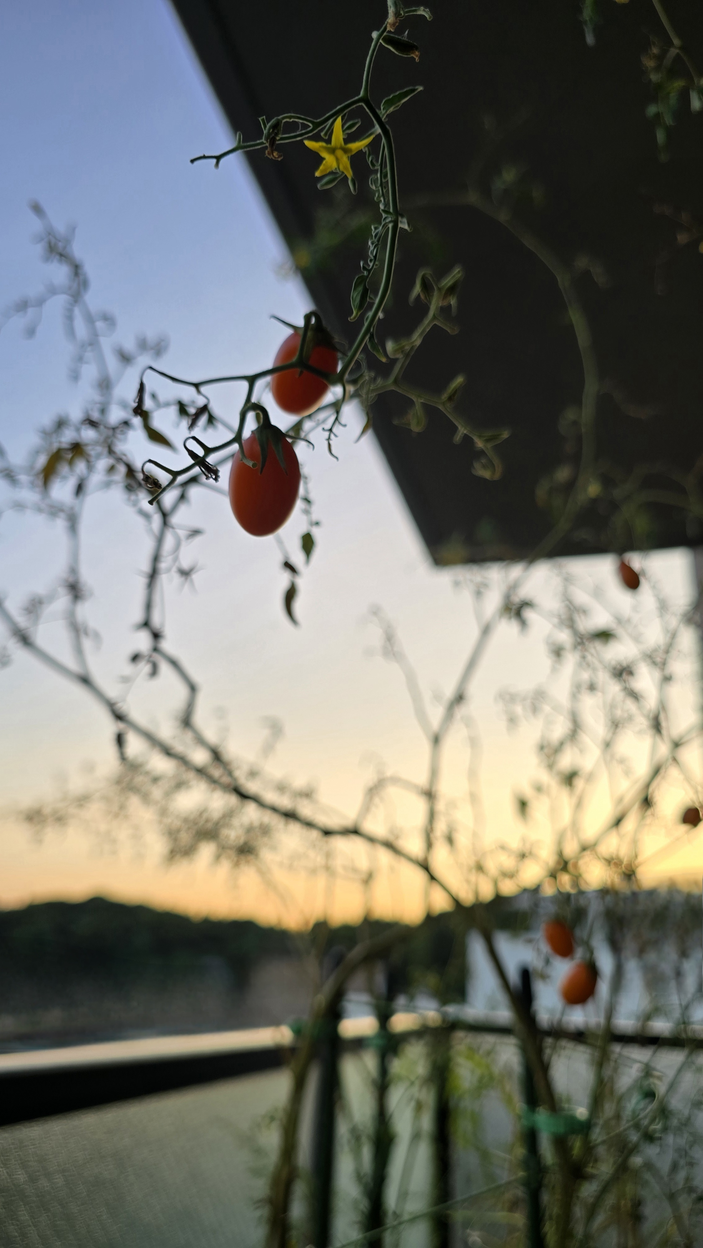 夕空にミニトマトのオレンジが映えて、とてもきれいでした✨️