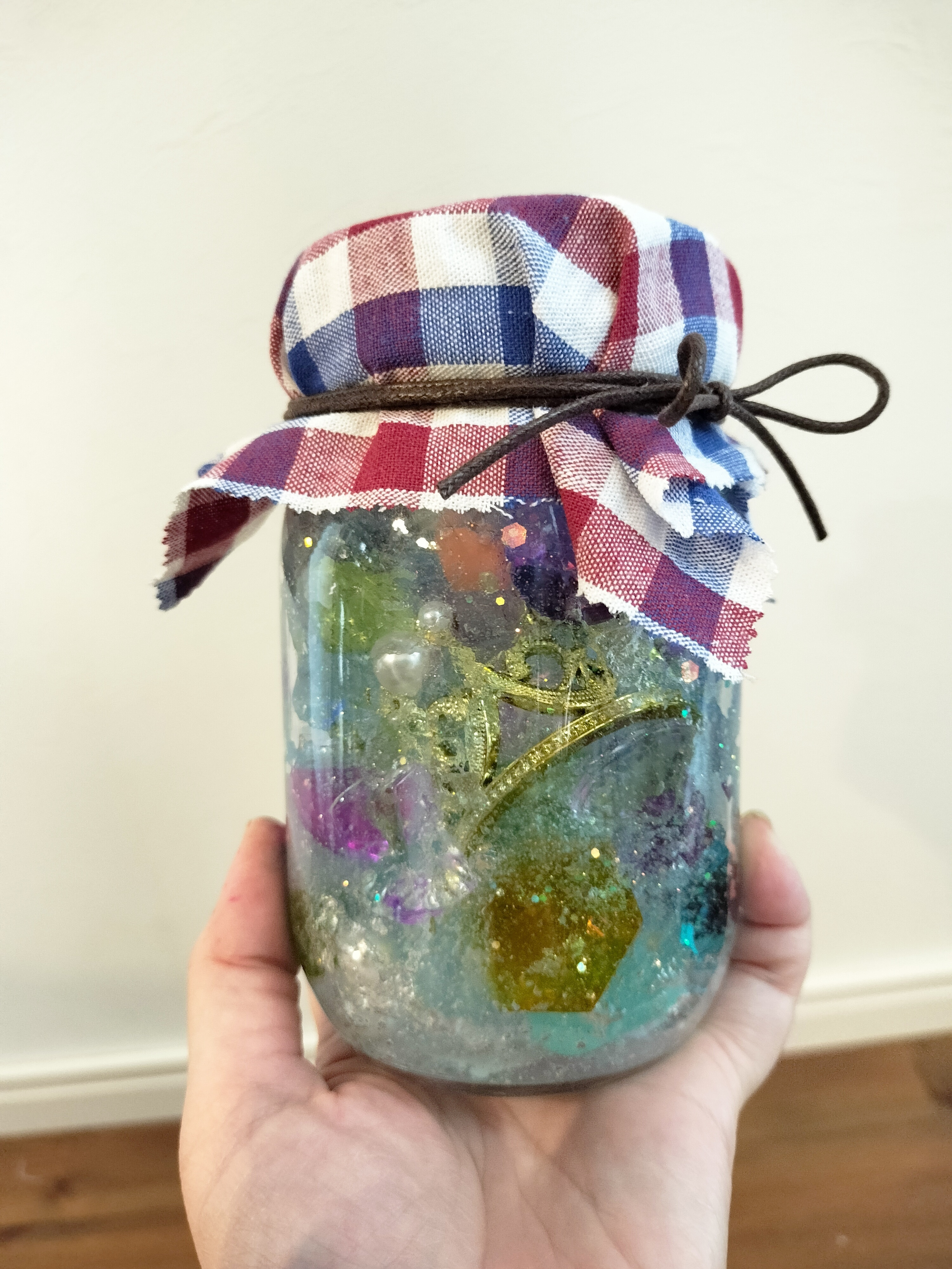琥珀糖などで再現されてる方も見ますが、琥珀糖は娘たち食べないだろうなぁ〜と思って。かわりに保冷剤に色付けて偽の宝石入れたら出来んじゃね!?とやってみました〜!