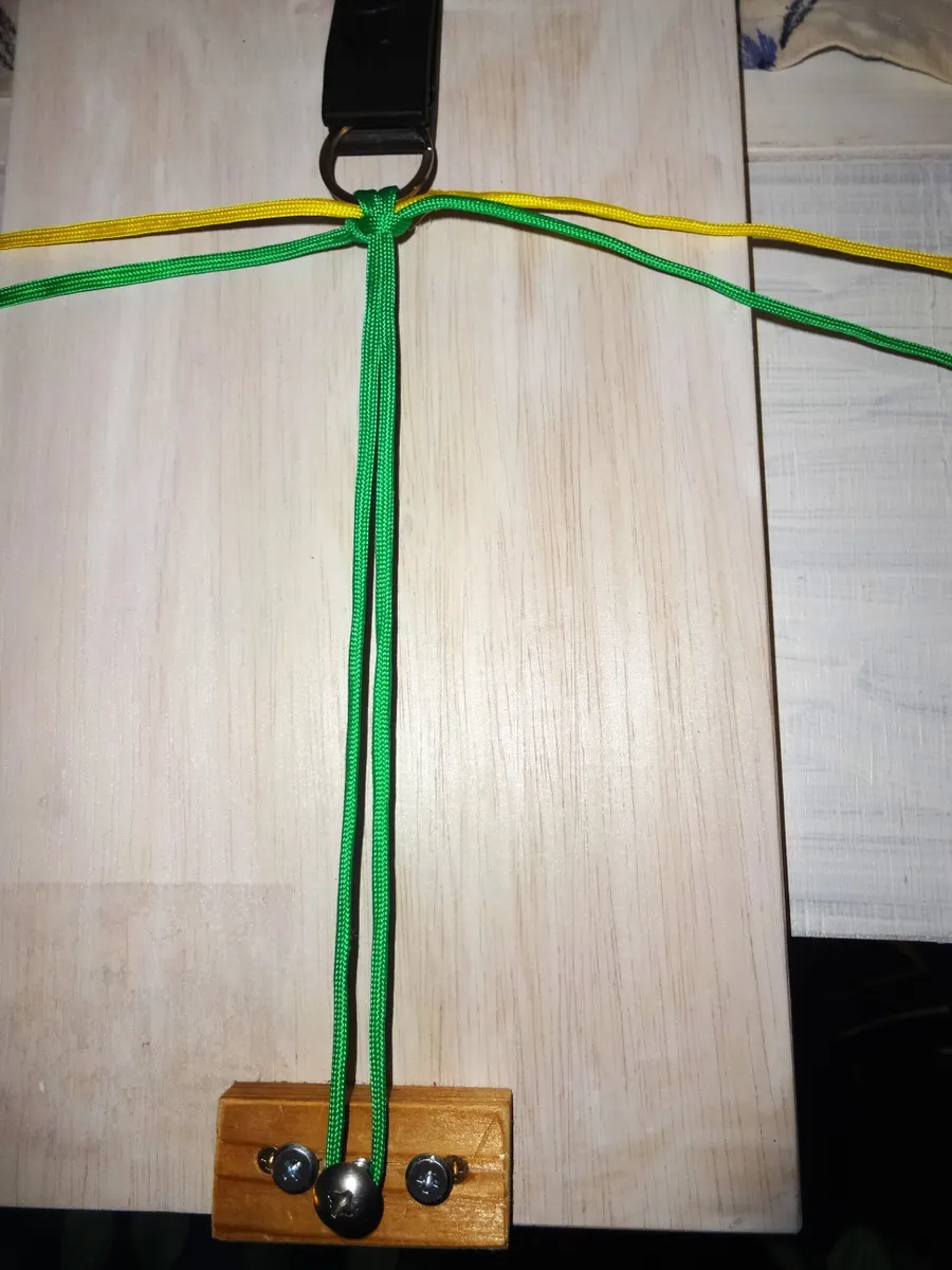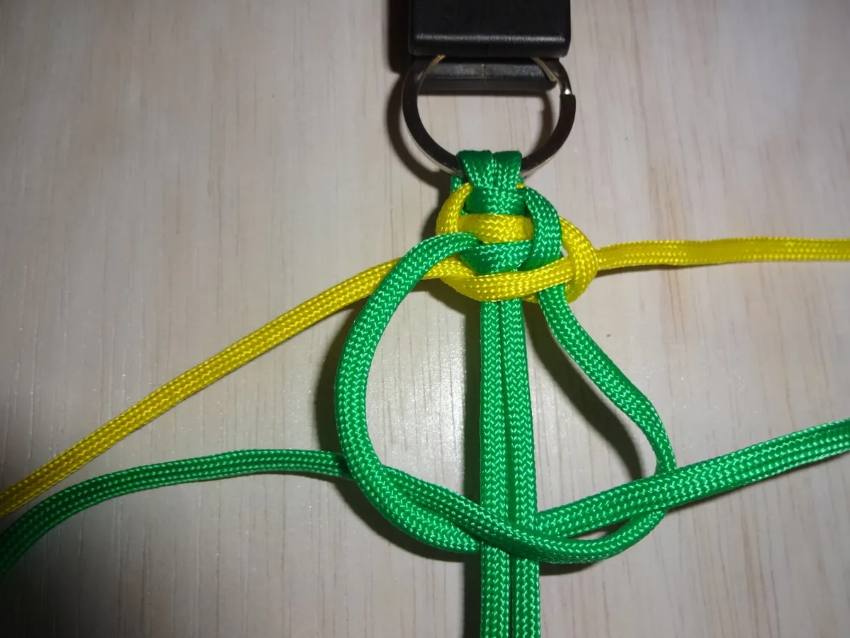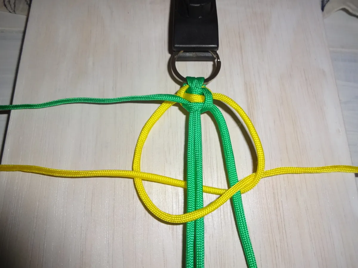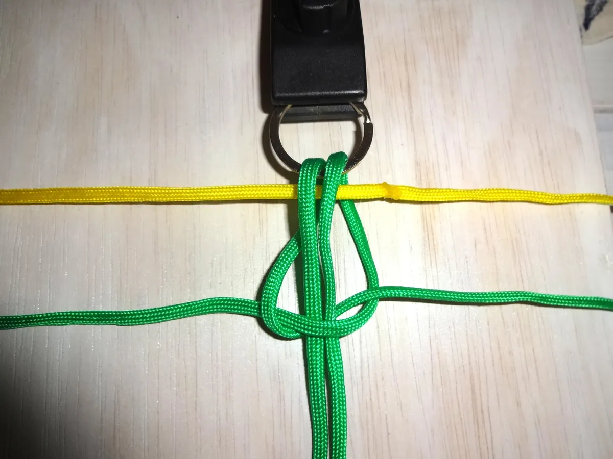 注→ 左の黄は 緑3本の下を通り 右の緑の上を通る。