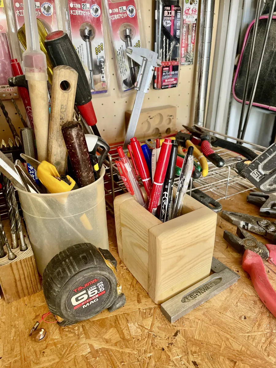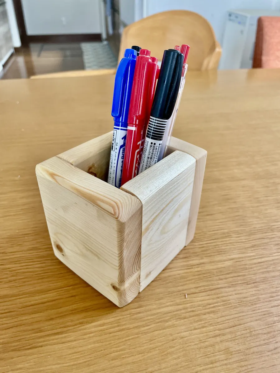 今度は端材でペン立てを作られたんですね。端材だから、フチの処理のところが合わないと気になりますよね😉マサミホさんはいつもきっちり丁寧に仕事される方だから、余計気になるかも。でもそれが端材の味でもあります。このペン立て安定感があってとても素敵です👍✨