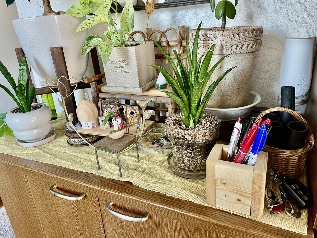 玄関前のシューズボックスの上に置いて見た🤭宅配便とか来てもサイン✍️しやすそー