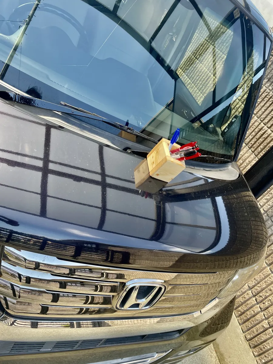 妻の車の上に置いて見たwコレは怒られるヤツですね笑笑