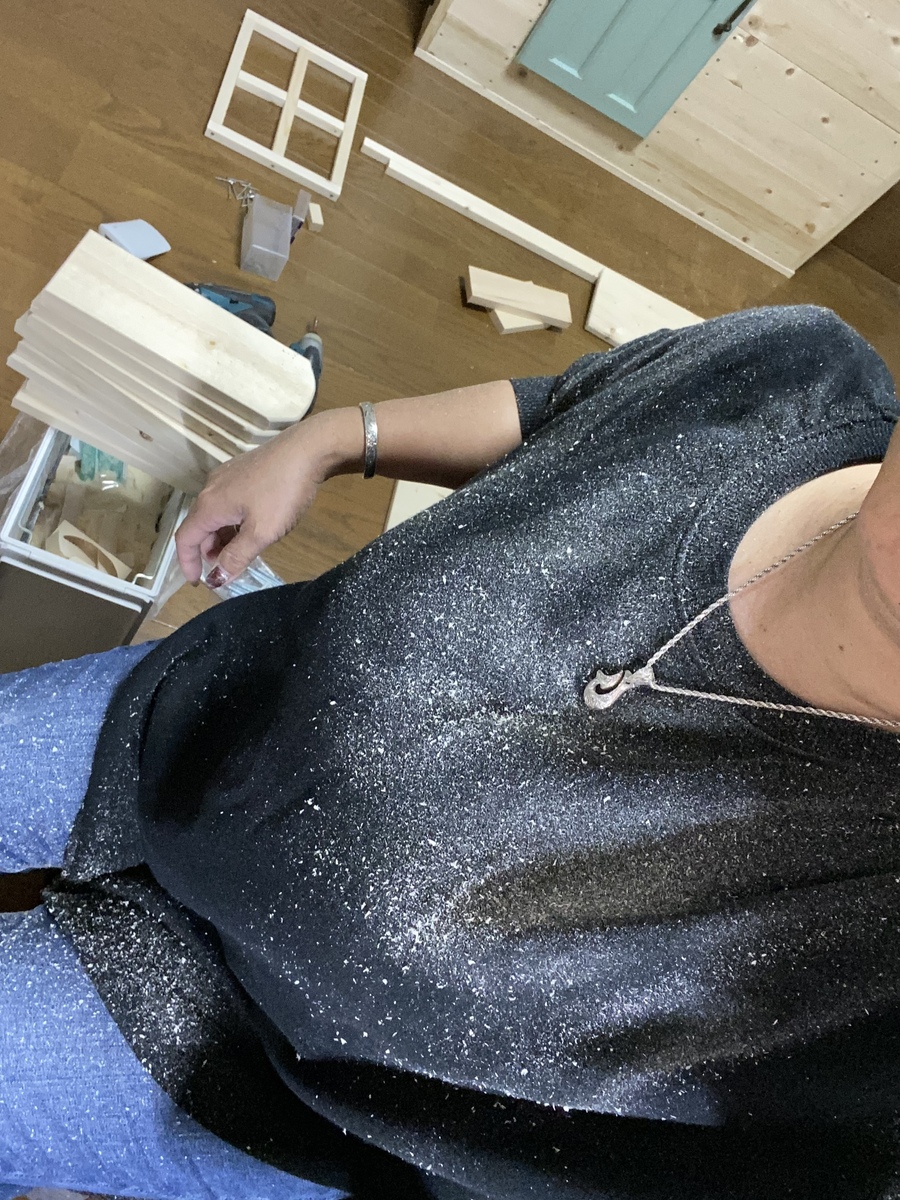 家の中の作業で、こんなに木屑が💦