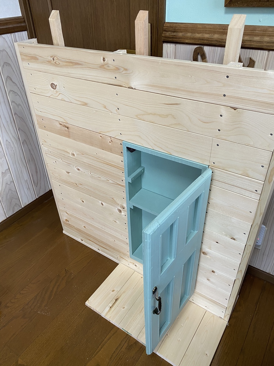 私がカインズさんのワークショップにハマる作品となったドアキャビネットです。