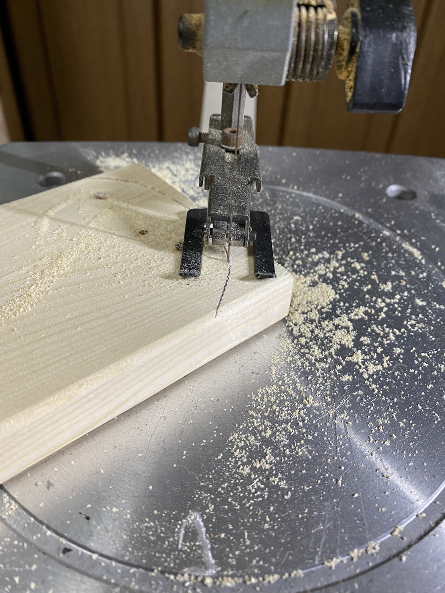 屋根のパーツを糸鋸ノコノコ。