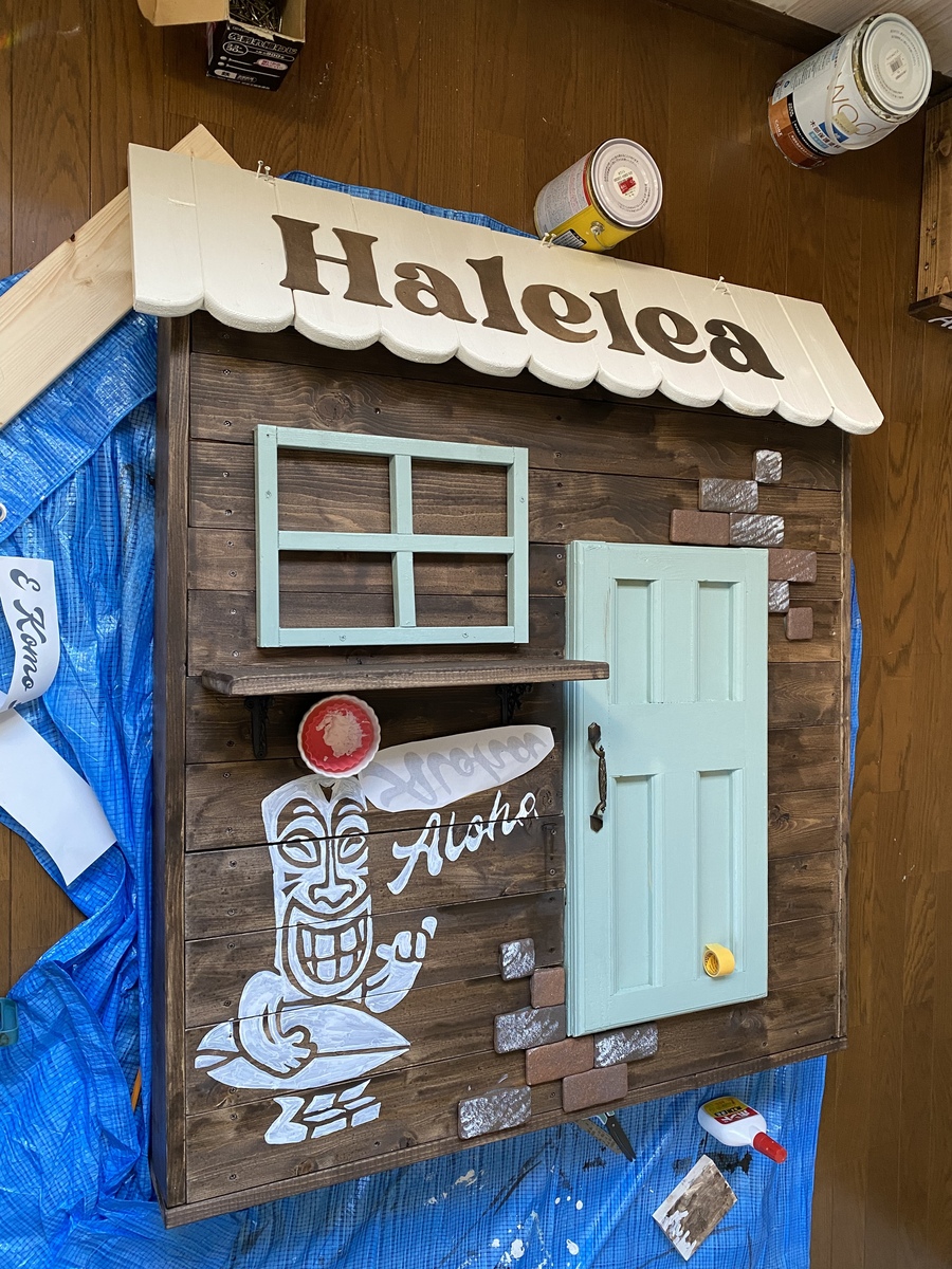 屋根の文字はベニヤを糸鋸でカットして