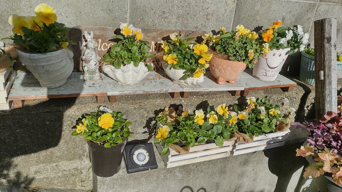 我が家でよく日が当たる場所はひと癖ふた癖あります。前回百均の板を使って、小さな鉢を並べましたが、実はもう1段下にもっと細い段があります。