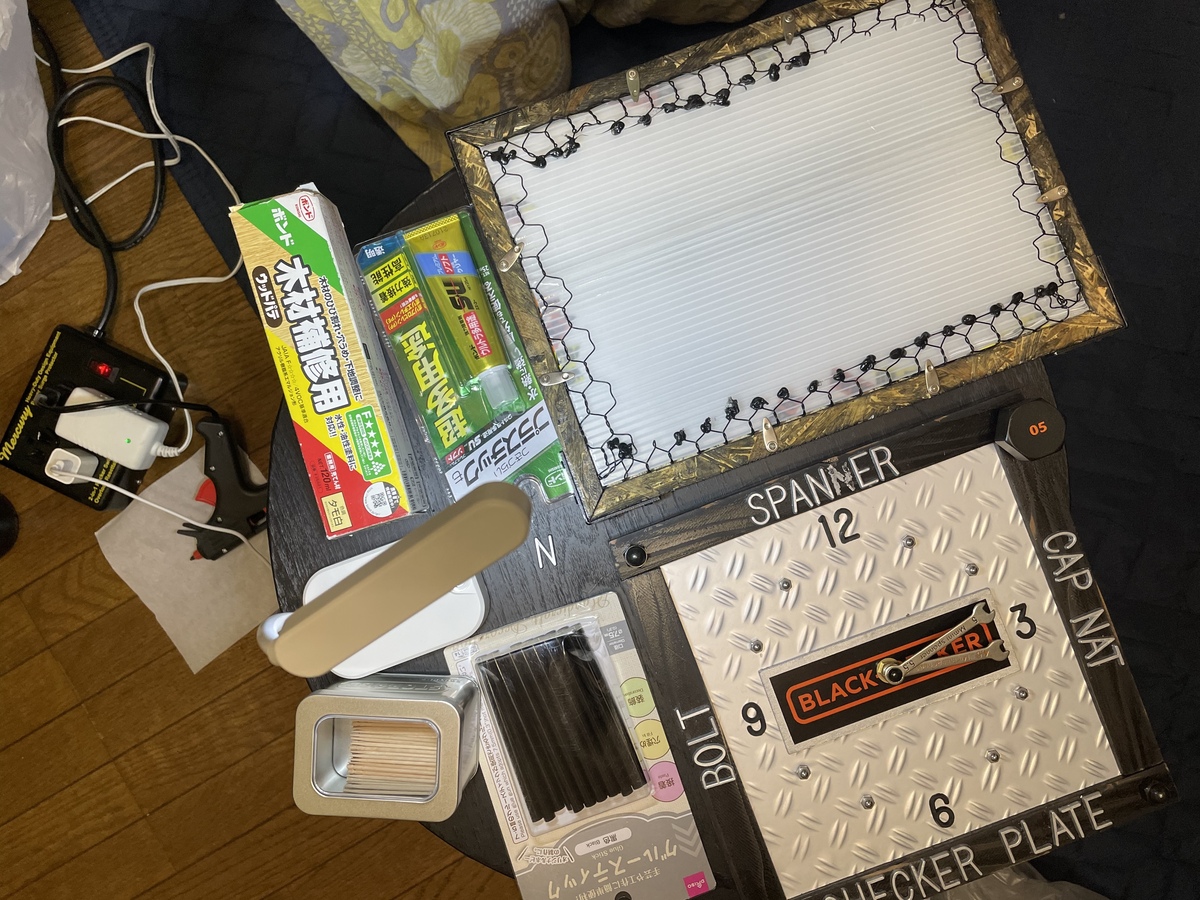 時計は木枠が一部欠けちゃって、文字パーツが何箇所か取れちゃったので、