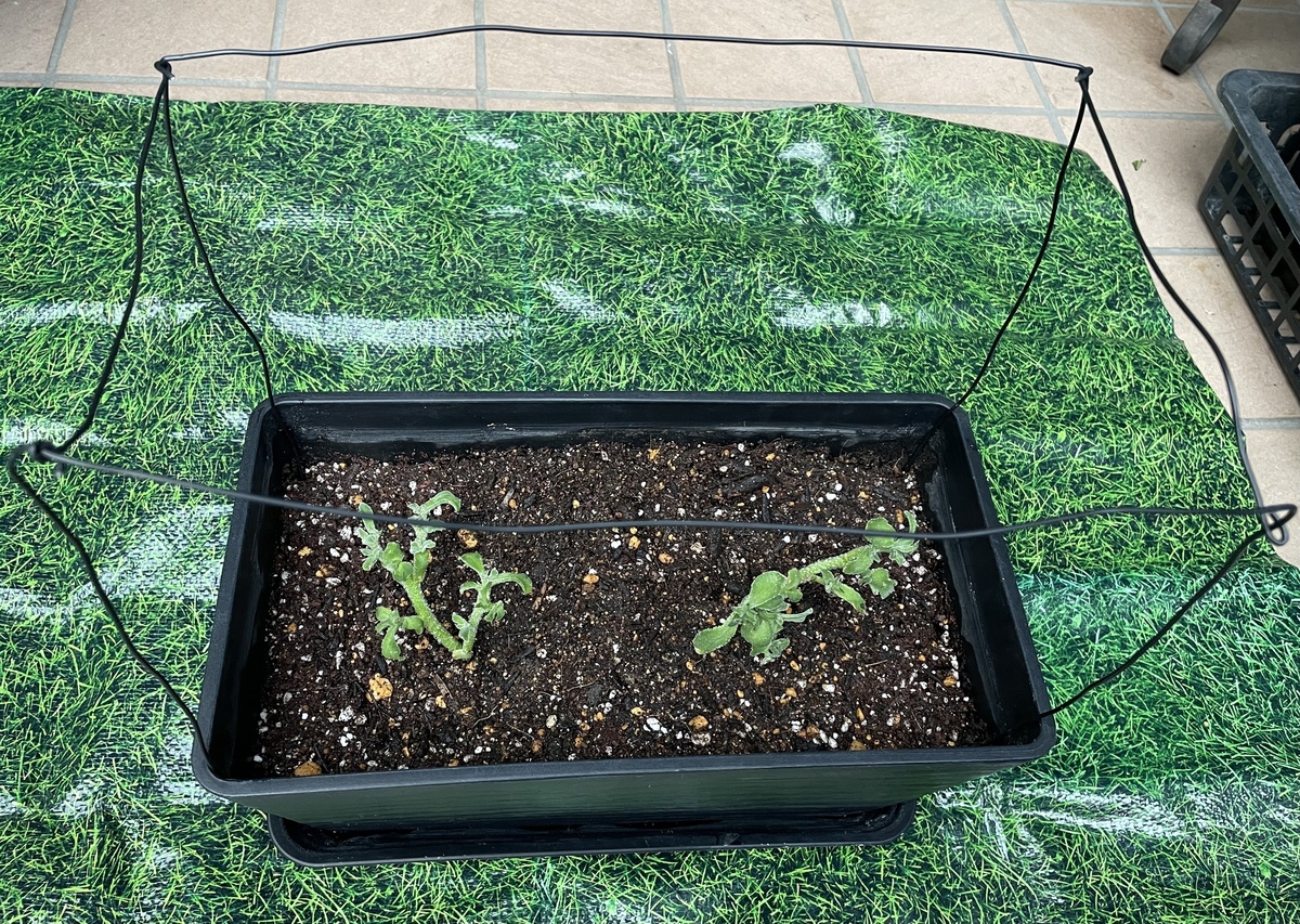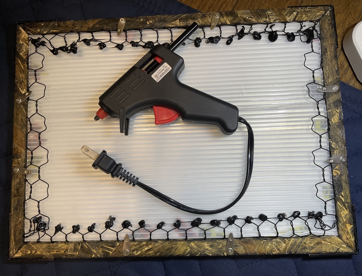 フェンスボードは裏側のチキンネットの切り口の処理を、危なくない様にとグルーガンで固めてたんだけど、これが一部捥げたっ⚫️⚫️‼️