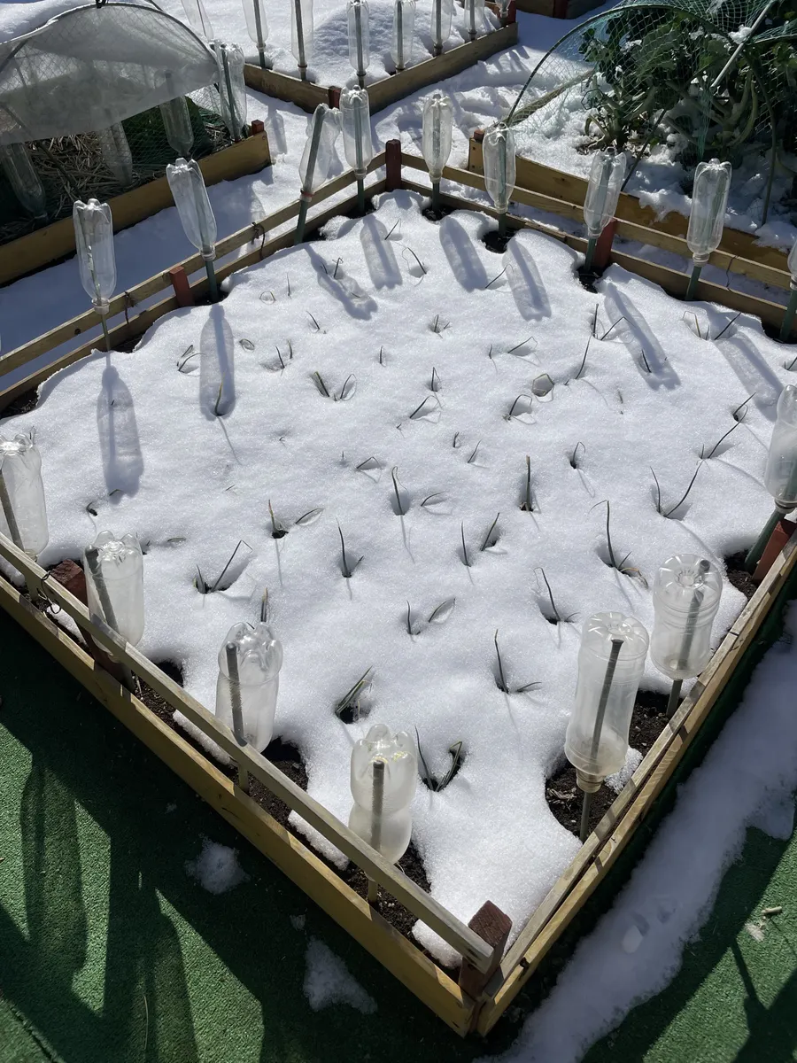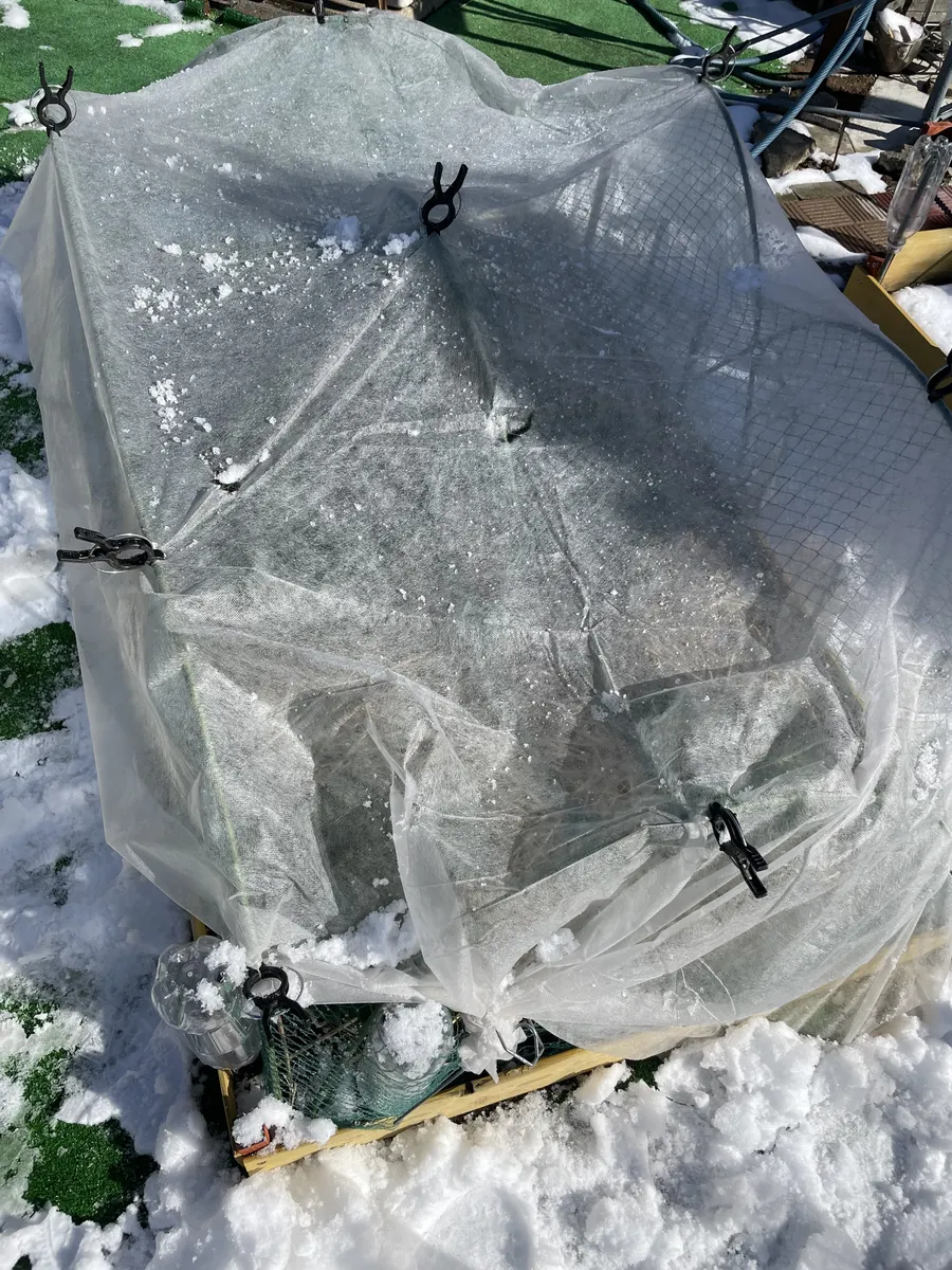 トップ > グリーン > 家庭菜園 > 雪明けの家庭菜園 ソラ5551 2026/02/09 10:31 雪明けの家庭菜園 一昨日夜からの雪で、しっかり白く覆われてます。陽の光は、眩しいくらいですが。 アイキャッチ画像のブロッコリー(ピクセル)、収穫しようかと思いましたが今日は見送りました。 もう少し待つ事にします。 ↓不織布に積もった雪を降ろしたほうれん草畑。 ↓不織布に積もった雪を降ろしたキャベツ畑。 ↓玉ねぎ畑。 ↓長ねぎ畑。 寒さに耐えて、きっと美味しい収穫になる事を祈って。 いいね 共有する 共有する X LINE リンクをコピー コメントする 1 件の返信 (新着順) ミュートしたユーザーの投稿です。 投稿を表示 みっきい 2026/02/09 17:59 寒さに耐え抜くと甘く美味しくなるんですよね😆 野菜たち頑張って!! いいね 返信する ミュートしたユーザーの投稿です。 投稿を表示 ソラ5551 2026/02/09 18:05 みっきい 頑張ってくれー😀 いいね 返信する