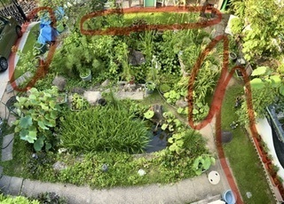 ウチの庭には4か所芝生のエリアがあるんですけど(赤で囲んだ所。)