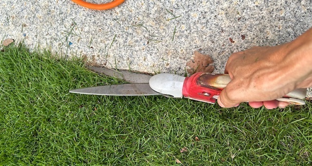 縁石や壁際は、専用のハサミでの作業なんですね😳かかんでの作業は大変💦