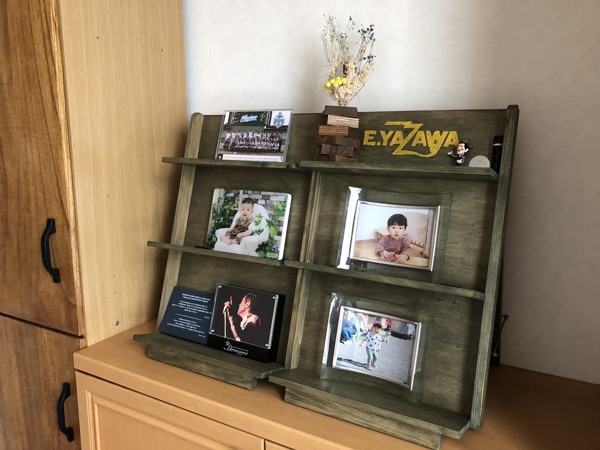 お孫さんの写真棚に、永ちゃんをコラボさせたところが面白いです😆