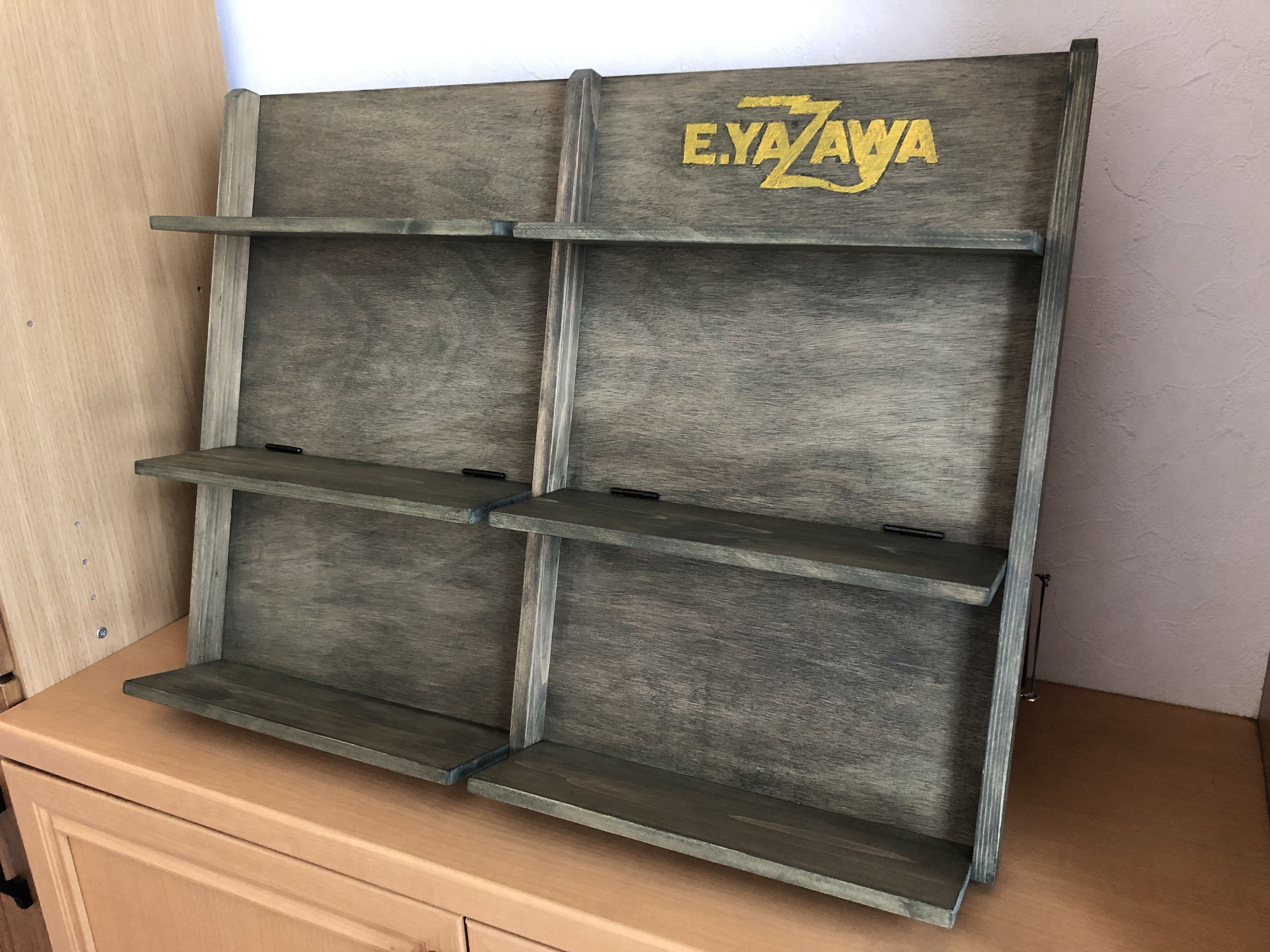 ディスプレイ棚、男前ですね〜✨写真が映えてます✨幸せいっぱいなご家族の様子が伝わってきます🎵
