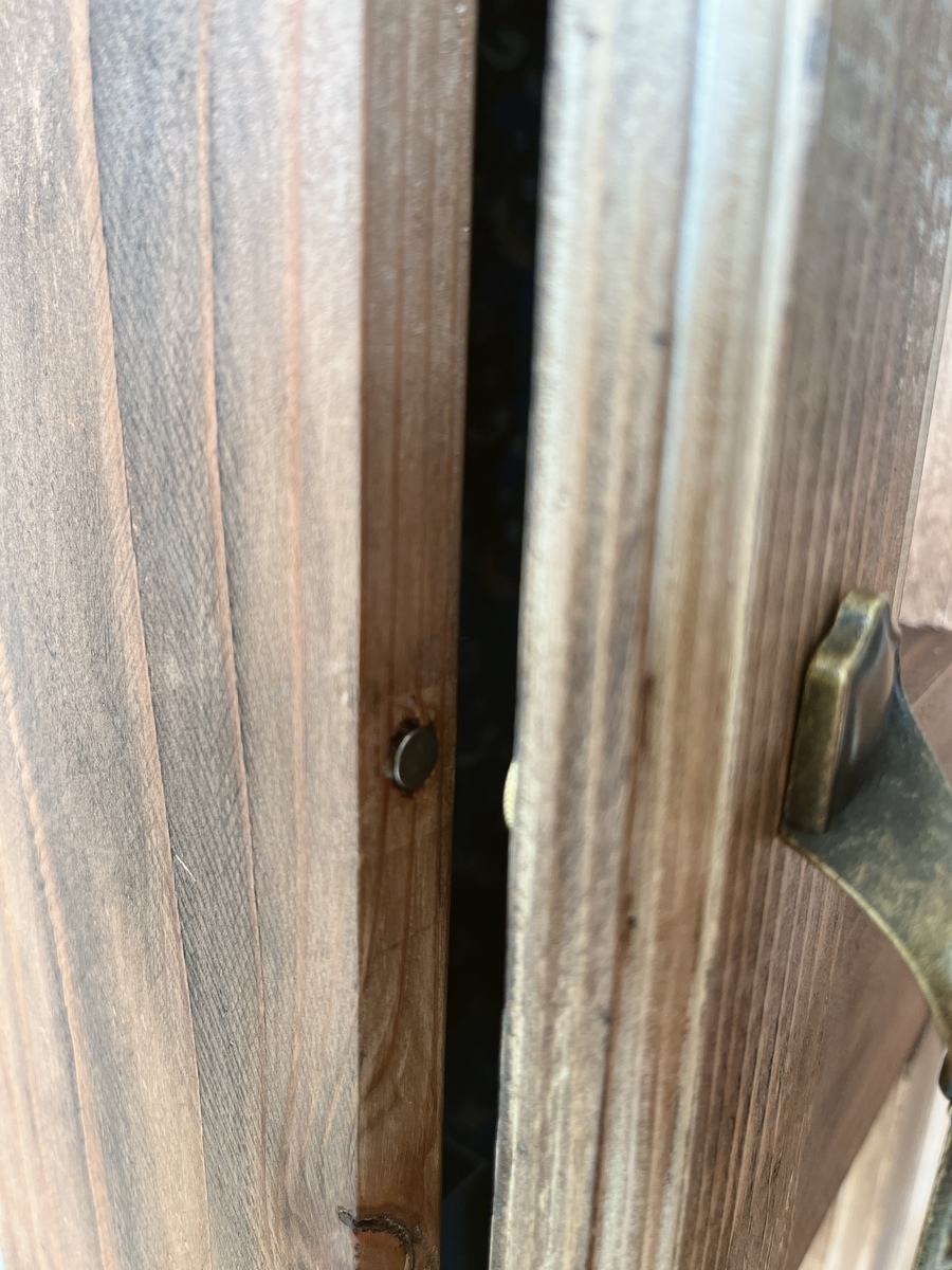 →100均のマグネットを埋めて、扉には画鋲をさす。程よい力なので、丁度良い😁