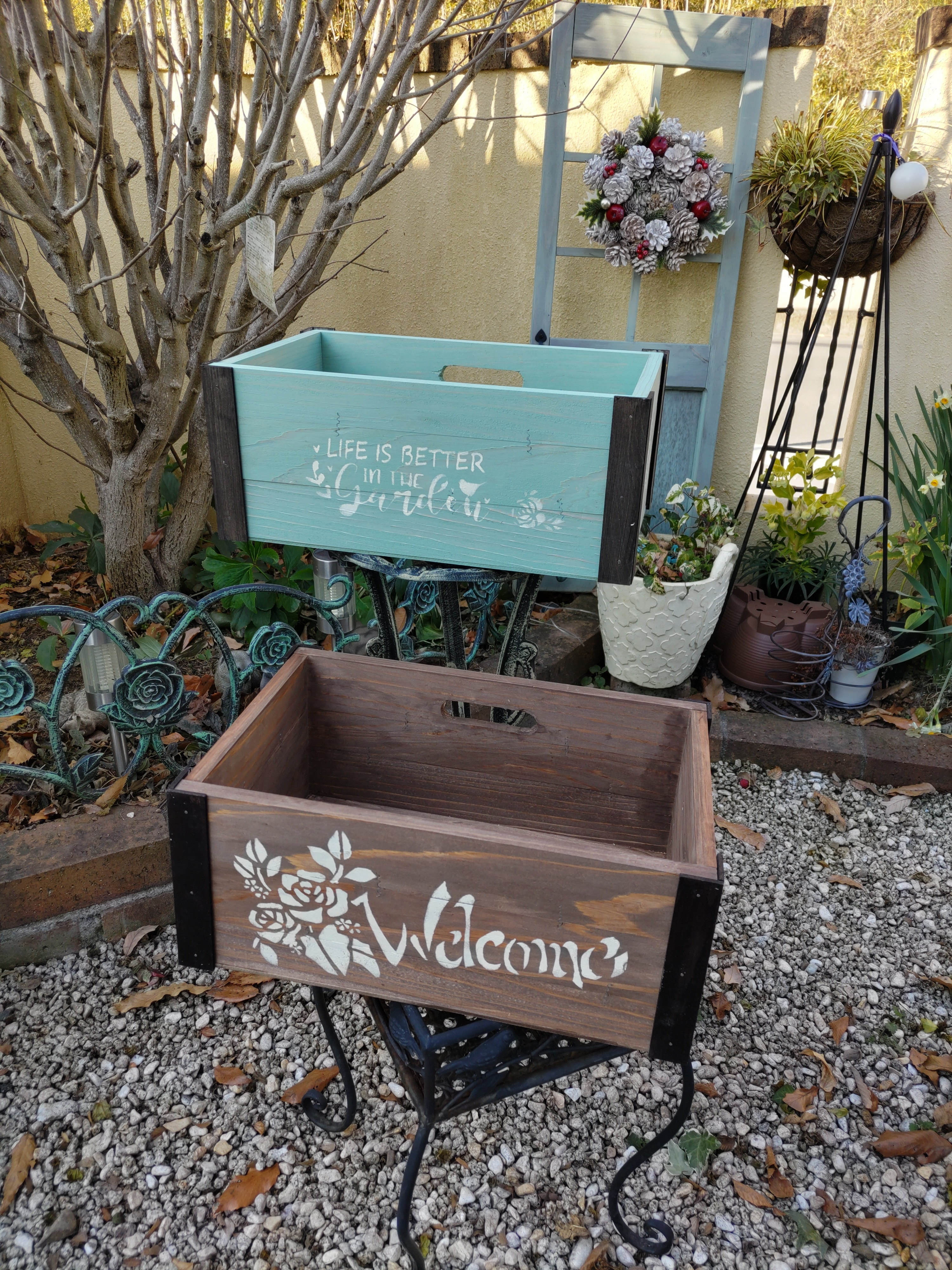ダスティグリーンはパッと明るく、ブラウンは落ち着いた感じ🥰どちらも素敵です💖こんな素敵な手作りステンシル是非来年はもっと活躍させてあげて下さい😆