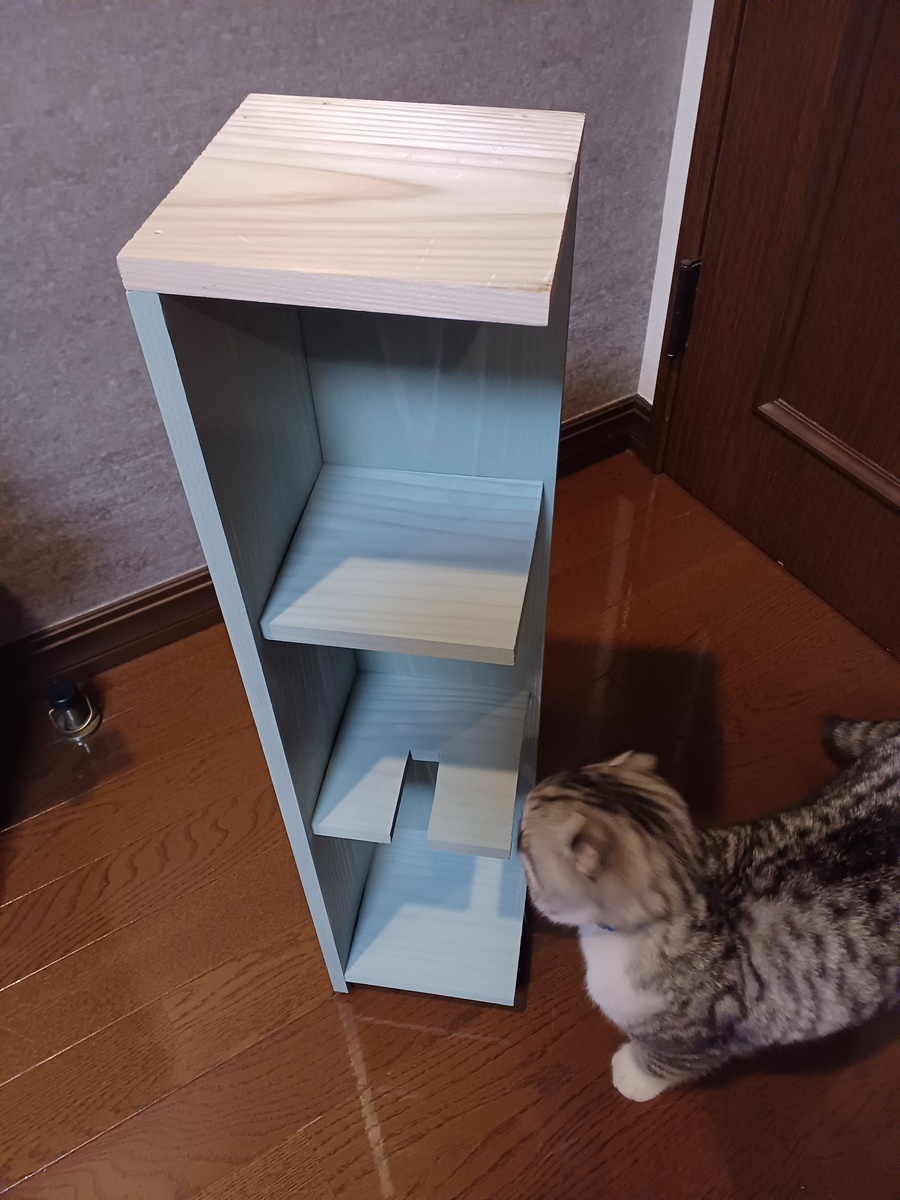 一番上の板だけ、バニラを塗り塗り、ビスで留めます❗