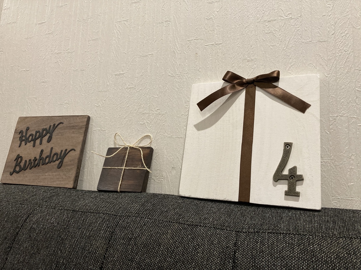 トップ > その他 > 4歳になる息子へ yu5o 2022/02/14 10:57 4歳になる息子へ 明後日4歳になる息子へ、端材を使ってちょっと小洒落た飾りを作りました。 そのまま置いてもいいし、持って写真撮ることもできるかなぁと。当日が楽しみ♩ happy birthdayの飾りの木は、ペンキの色を薄めて塗ってみたのですが、私が好きすぎてハマりそうです! いいね 共有する 共有する X LINE リンクをコピー コメントする 3 件の返信 (新着順) ミュートしたユーザーの投稿です。 投稿を表示 あにー 2022/02/20 16:01 4日遅れましたが、4歳のお誕生日おめでとう🎉🎉🎉🎉 いいね 返信する ミュートしたユーザーの投稿です。 投稿を表示 yu5o 2022/02/22 09:21 わぁ❣️ありがとうございます😍 いいね 返信する ミュートしたユーザーの投稿です。 投稿を表示 Grass艹crown 2022/02/14 17:37 色味がとっても素敵🥰🪵🎁❤️ お写真撮るのが楽しみですねぃ📸✨ いいね 返信する ミュートしたユーザーの投稿です。 投稿を表示 yu5o 2022/02/15 19:07 ありがとうございます❣️ 薄めたらどハマりする色味になりました😍 明日が誕生日、楽しみです♩ いいね 返信する ミュートしたユーザーの投稿です。 投稿を表示 べるん 2022/02/14 11:07 4歳のお誕生日おめでとうございます🎉 息子さんとお祝いの写真をとるのが、待ち遠しいですね✨ いいね 返信する ミュートしたユーザーの投稿です。 投稿を表示 yu5o 2022/02/14 11:51 ありがとうございます❣️ 壊されずに撮れますように、そして4歳になって暴れん坊が落ち着くことを願います笑 いいね 返信する