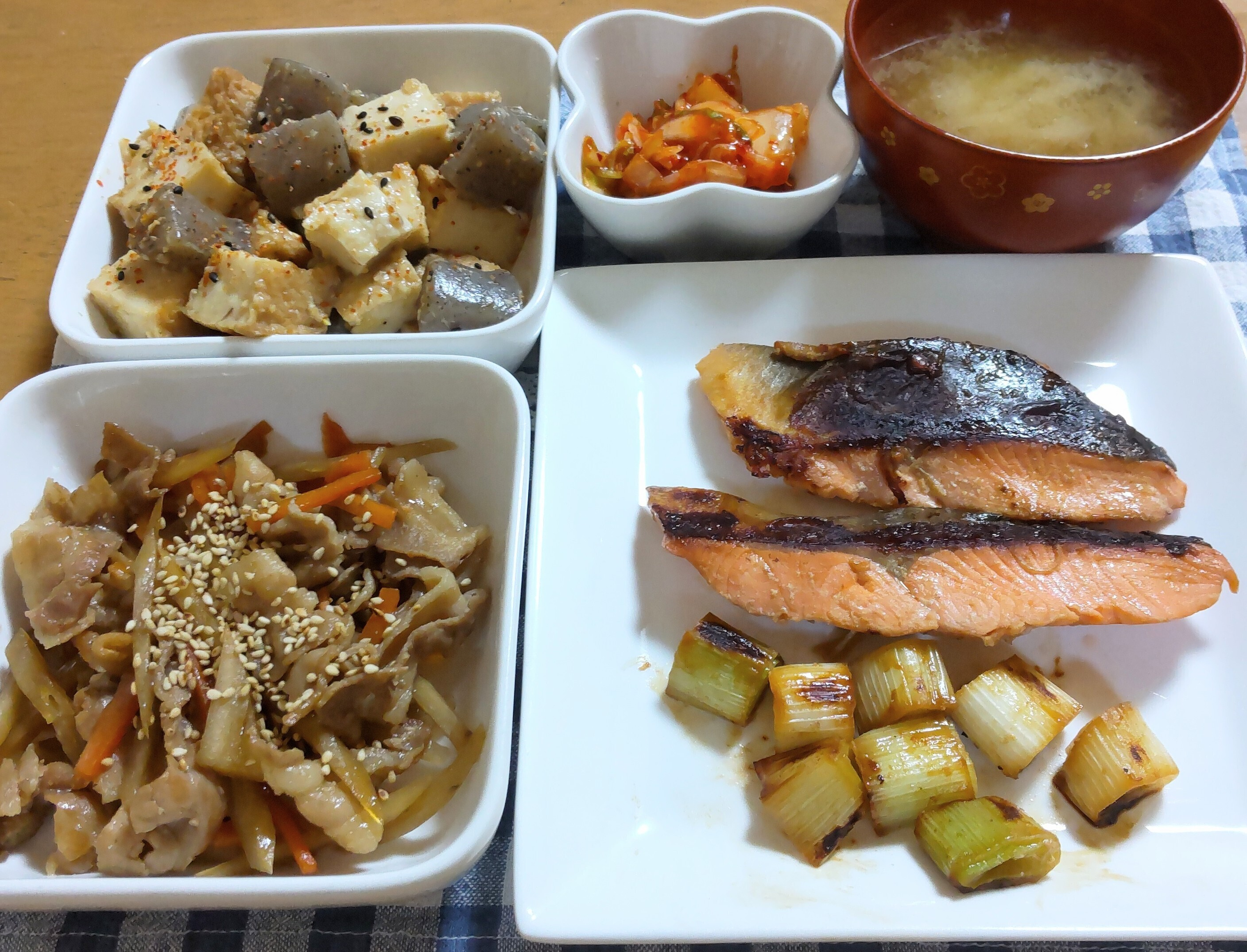 あとは大根の味噌汁と、ネットレシピで作った厚揚げとこんにゃくの味噌煮です。こんにゃくはフォークでブスブスしてから切りました。Ψ(`∀´)Ψおりゃー!ブスブス!七味かけて食べました。