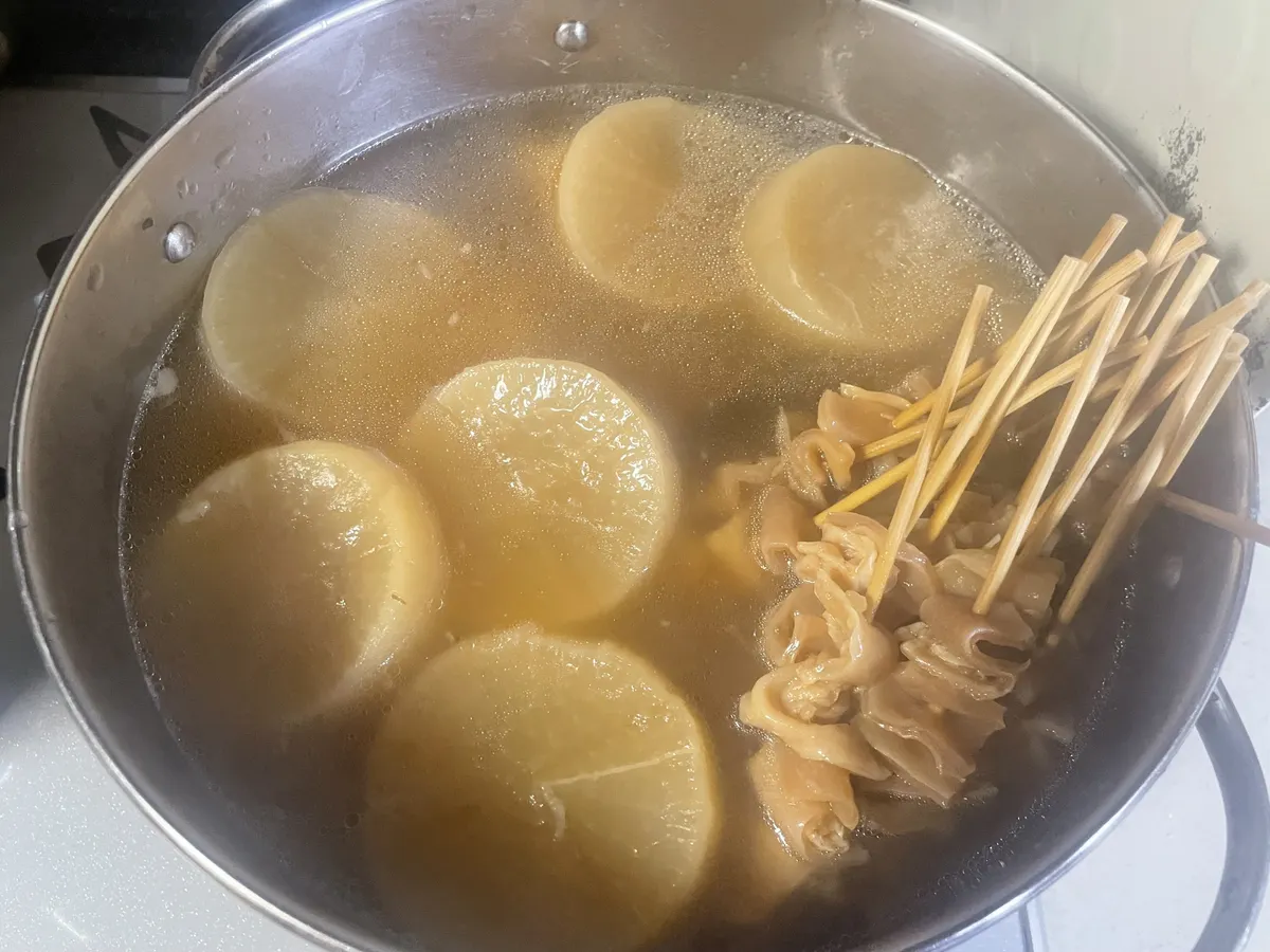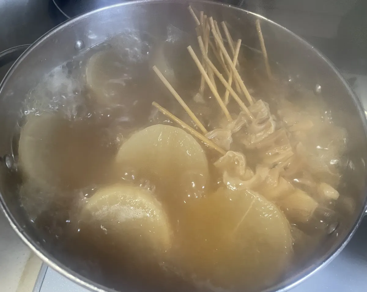 ・大根厚め輪切り、お米一掴み下処理はワタクス的にはやりたい工程だったが、実際おでん完成させられるまで3時間物語になっちゃって笑うしかないっ🤣🙌⏰🍢🍲💦