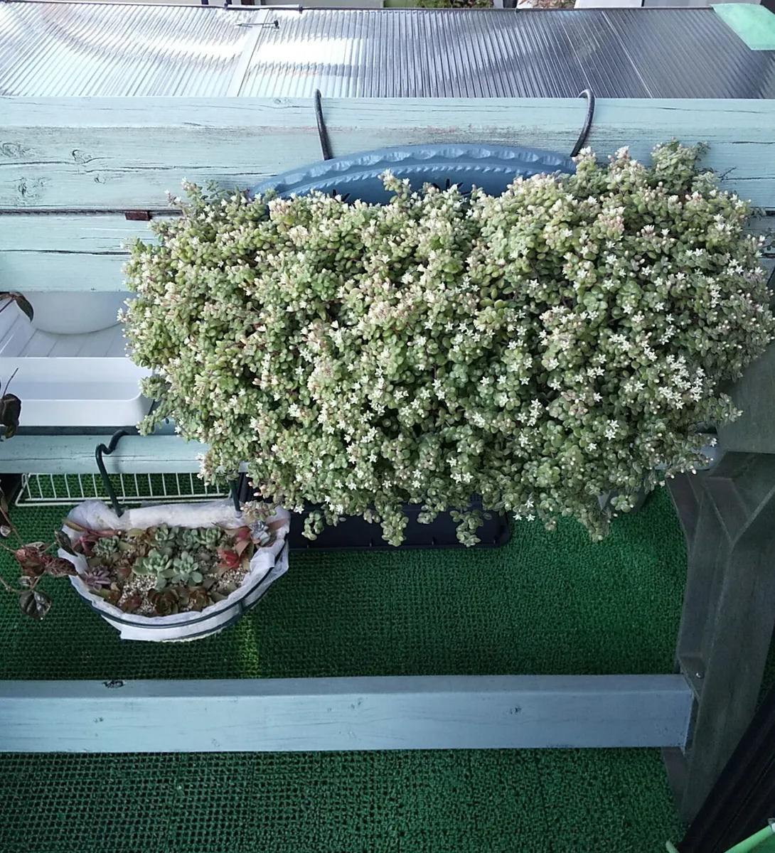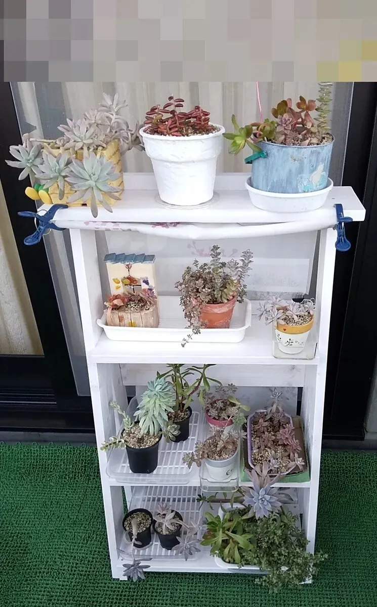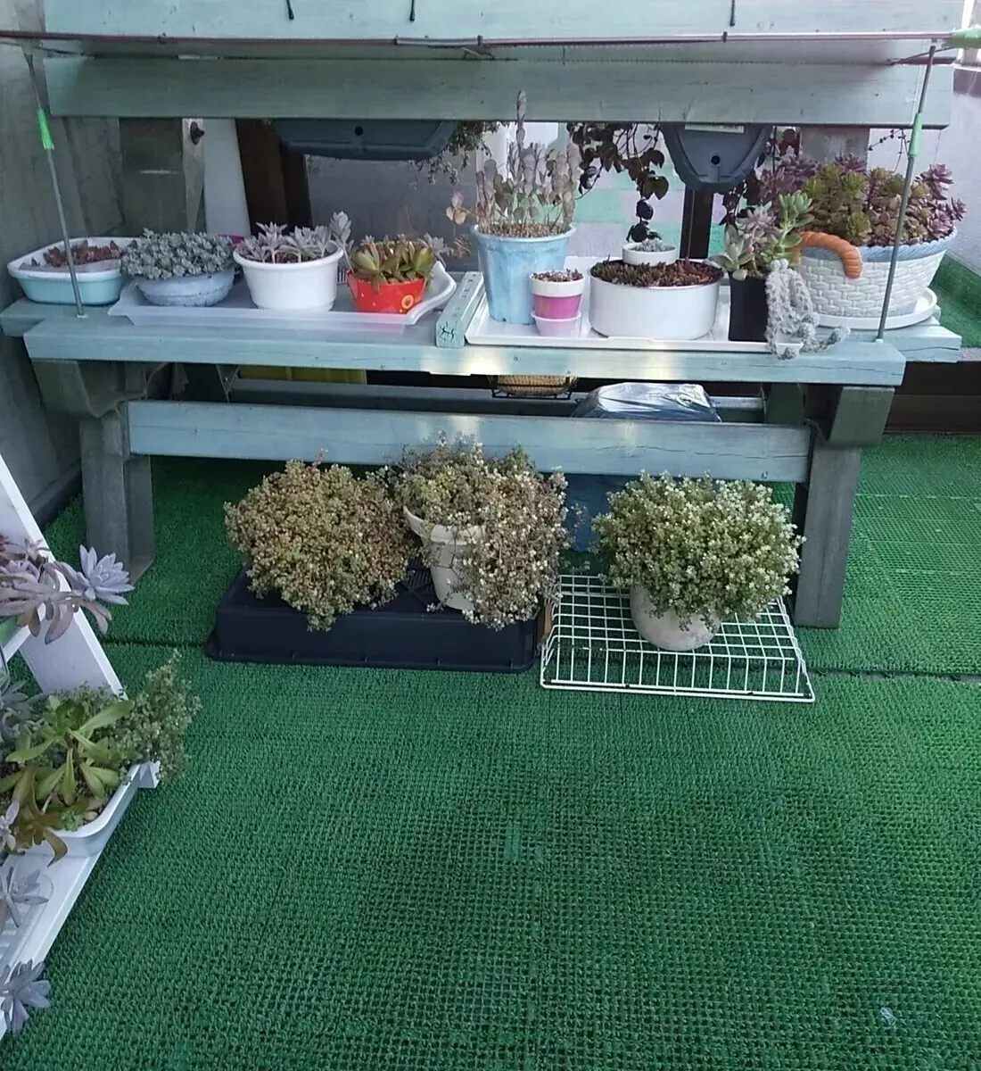 ![]() 昨年製作 古いベンチをリメイク塗装、端材を足し、ポリカ中空ボードの屋根を付けた多肉棚 |