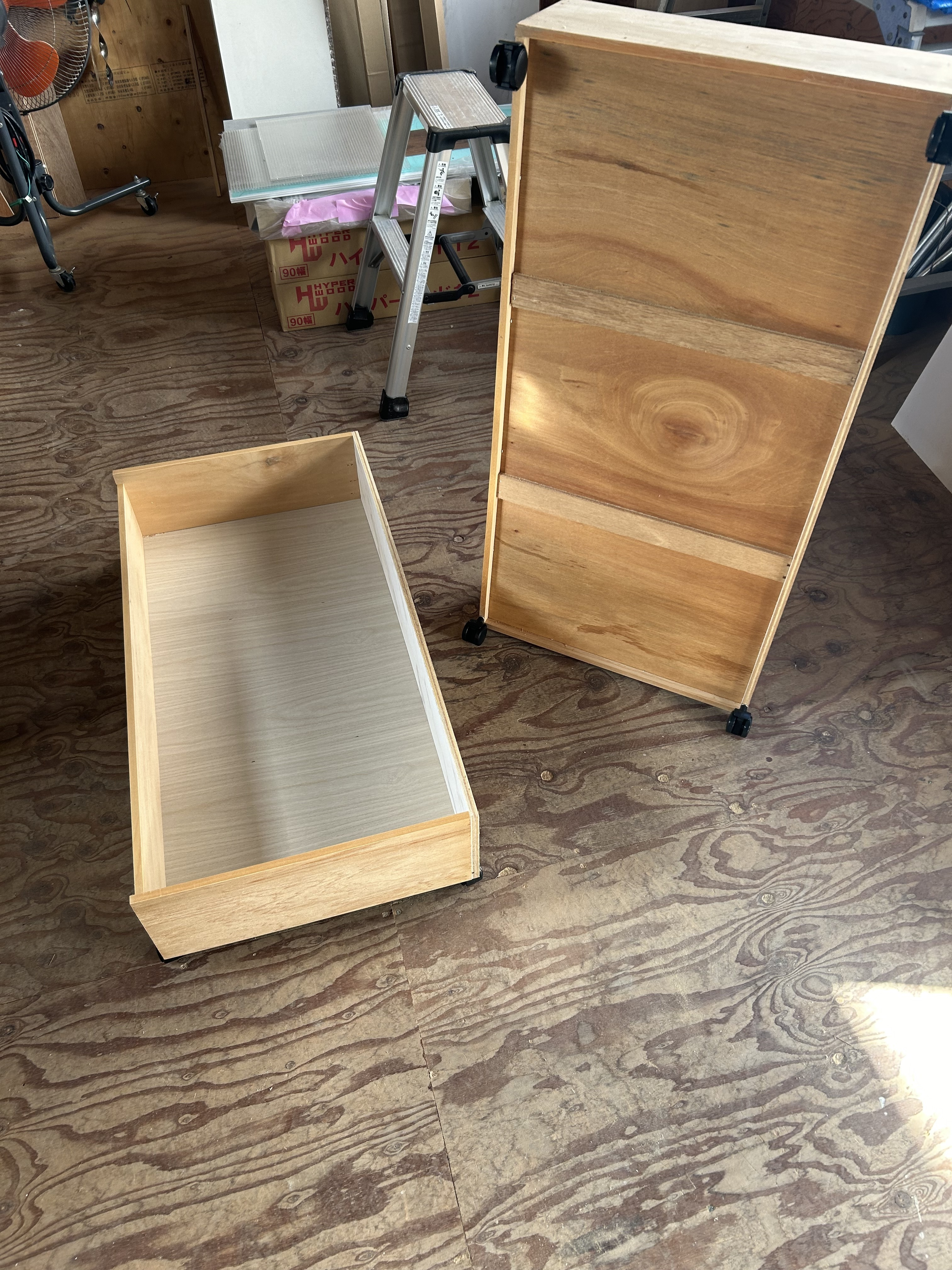 トップ > その他 > ベッド引出し収納のリメイク mimin 2024/01/04 14:59 ベッド引出し収納のリメイク 不要になるベッド。引出し収納部だけリメイクしてみました。 クリスマスや正月の作品を入れて片付けるつもりです😃 本体は粗大ゴミへ前板が見た目が倉庫に合わないし、高さが違うので解体余っていたフロアー材をカットして、底板用の溝を突きました。戸車を付けて完成👍、倉庫の上棚の上にセットしました。最後まで見ていただきありがとうございました😊 いいね 共有する 共有する X LINE リンクをコピー コメントする 4 件の返信 (新着順) ミュートしたユーザーの投稿です。 投稿を表示 ミッチー 2024/01/05 07:33 ナイスリメイクですね🙌 高い所でも戸車つきだと便利そうですね! いいね 返信する ミュートしたユーザーの投稿です。 投稿を表示 mimin 2024/01/05 08:37 ミッチー おはようございます😃 ありがとうございます😊 この後端に落下防止の輪止め付けました👍 いいね 返信する ミュートしたユーザーの投稿です。 投稿を表示 ミッチー 2024/01/06 07:05 mimin おおーっ!更にナイスアイディアですね👍️ なるほど💡 いいね 返信する ミュートしたユーザーの投稿です。 投稿を表示 mimin 2024/01/06 09:26 ミッチー 🙇 いいね 返信する ミュートしたユーザーの投稿です。 投稿を表示 シン ひよっこ 葵 2024/01/04 20:45 miminさん、こんばんは お役立ちリメイクですね✨ タイヤもついていて、とっても使い勝手よさそうでよいですねぇヽ(´ω`)ノ いいね 返信する ミュートしたユーザーの投稿です。 投稿を表示 mimin 2024/01/04 20:58 シン ひよっこ 葵 シンひよっこ葵さん、こんばんは😀 ありがとうございます。 タイヤも古いストッカーなど処分する時に取り外しておいたものなので0円リメイクです👍 いいね 返信する ミュートしたユーザーの投稿です。 投稿を表示 シン ひよっこ 葵 2024/01/05 21:27 mimin 『0円リメイク』✨ ますますすばらしい.。゜+.(´▽`)。+.゜+・ いいね 返信する ミュートしたユーザーの投稿です。 投稿を表示 mimin 2024/01/05 21:45 シン ひよっこ 葵 ありがとうございます😅 いいね 返信する ミュートしたユーザーの投稿です。 投稿を表示 ちーず 2024/01/04 20:05 リメイク大成功流石です👍 木部分は何かに変身させたくなりますよね😆 いいね 返信する ミュートしたユーザーの投稿です。 投稿を表示 mimin 2024/01/04 20:29 ちーず こんばんは😃 なんとか上手くいきました☺️ これにツリー🌲とかトナカイとかしめ縄とか色々と一時保管するつもりです👍 ありがとうございます😊 いいね 返信する ミュートしたユーザーの投稿です。 投稿を表示 みー 2024/01/04 15:31 私もクリスマス前にいくつか家具を解体しました😅解体するだけでクタクタだけど、粗大ゴミだと有料だしなって💦使える部分は再利用するのが1番ですよね☺️ いいね 返信する ミュートしたユーザーの投稿です。 投稿を表示 mimin 2024/01/04 16:52 みー ご自身で解体されるとはご立派です😃 わたしも極力そうしてますが、今回はマットがあったので粗大ゴミです😅 ありがとうございます😊 いいね 返信する