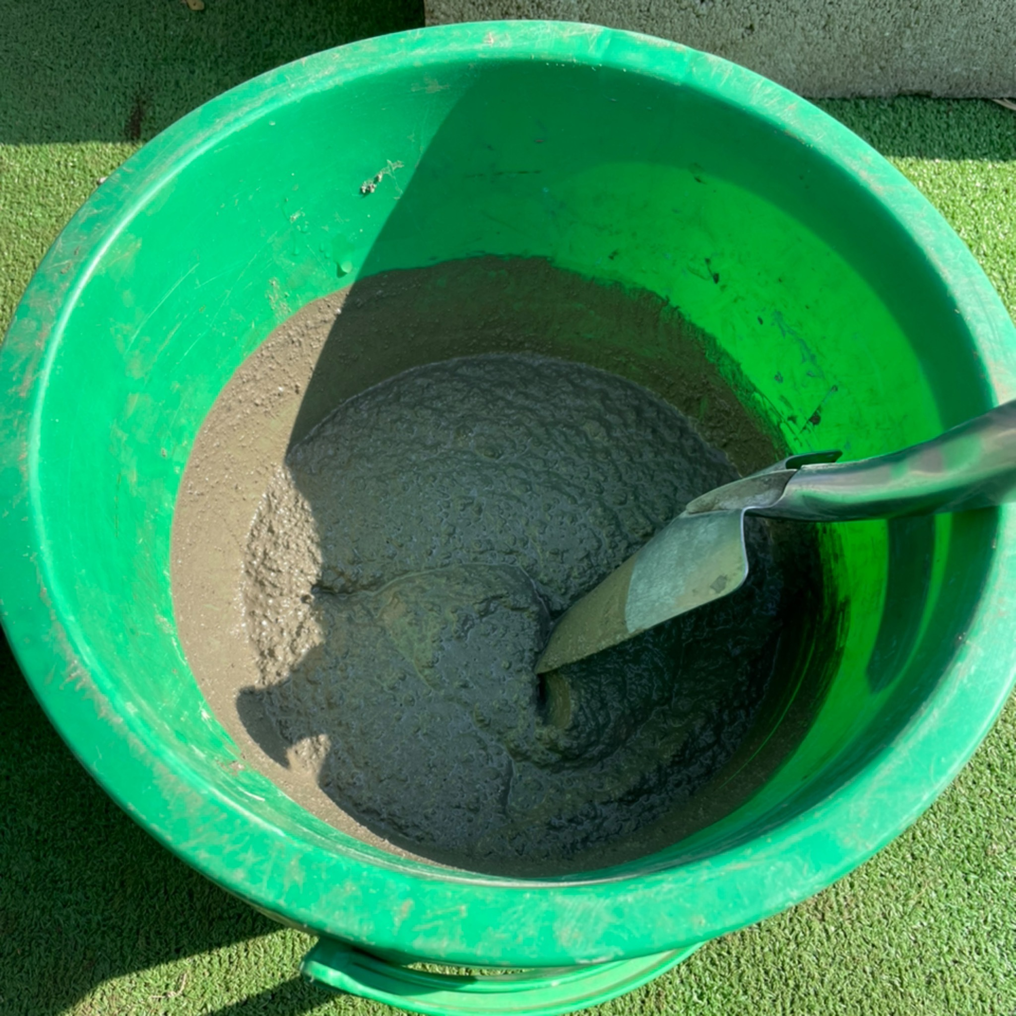 普通セメント500g+川砂1.5kgをよく掻き混ぜてから、水を少しずつ足していきながら粘度を調節してゆきます。少し緩かったけどヨシとしました。