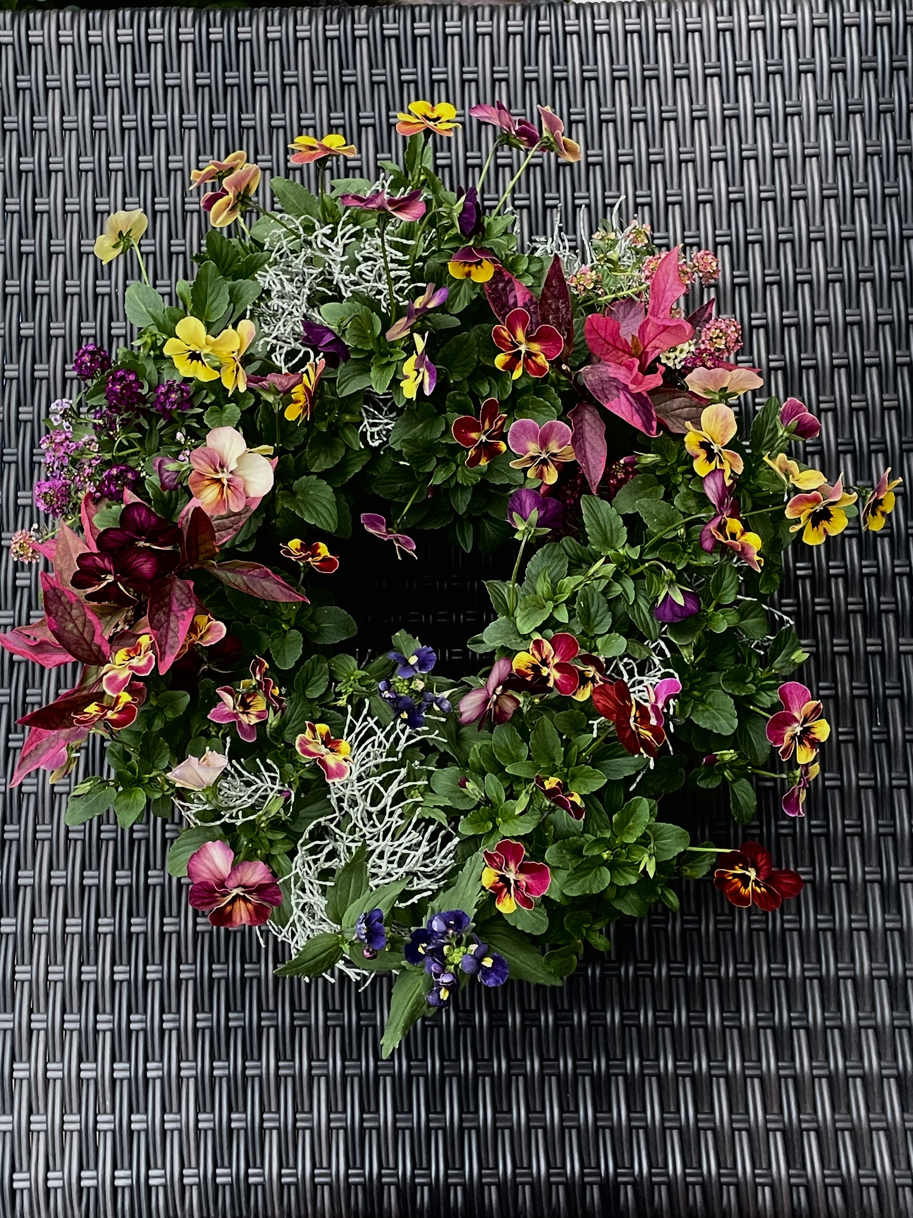 ベースは何でしょうか?🤔自分もビオラ植えましたが、育つと凄く増えるのでまずはスカスカに…😓全然華やかではありません💦最初からこのようでもいいのですよね。