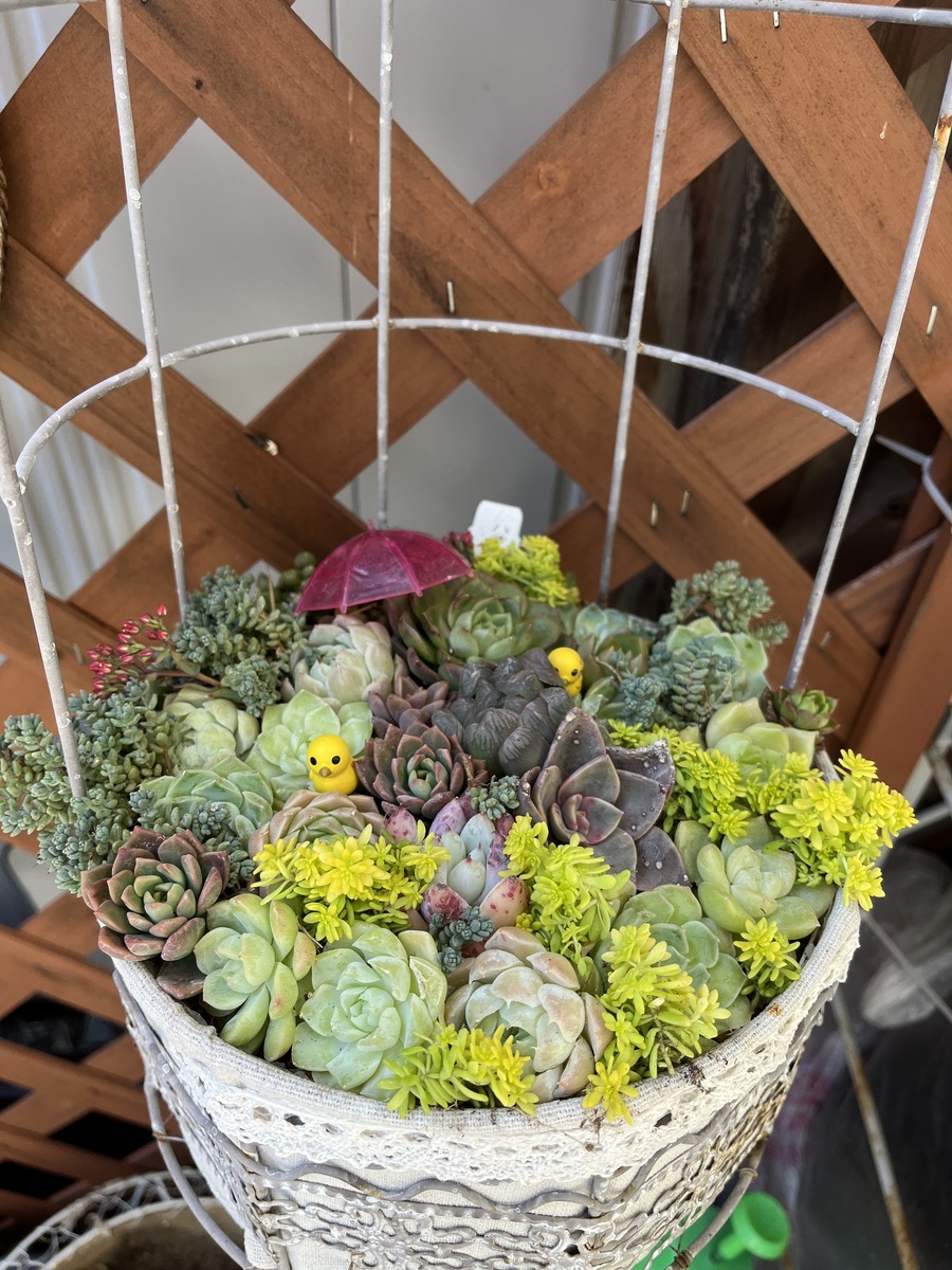 投稿を表示多肉の中に見え隠れする🐣ちゃんに鳥籠も可愛くて素敵な寄せ植えですね💓