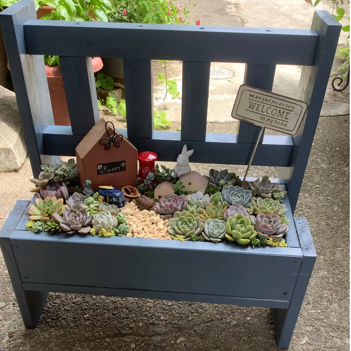 ベンチ型プランターにおしゃれな寄せ植え😍😍