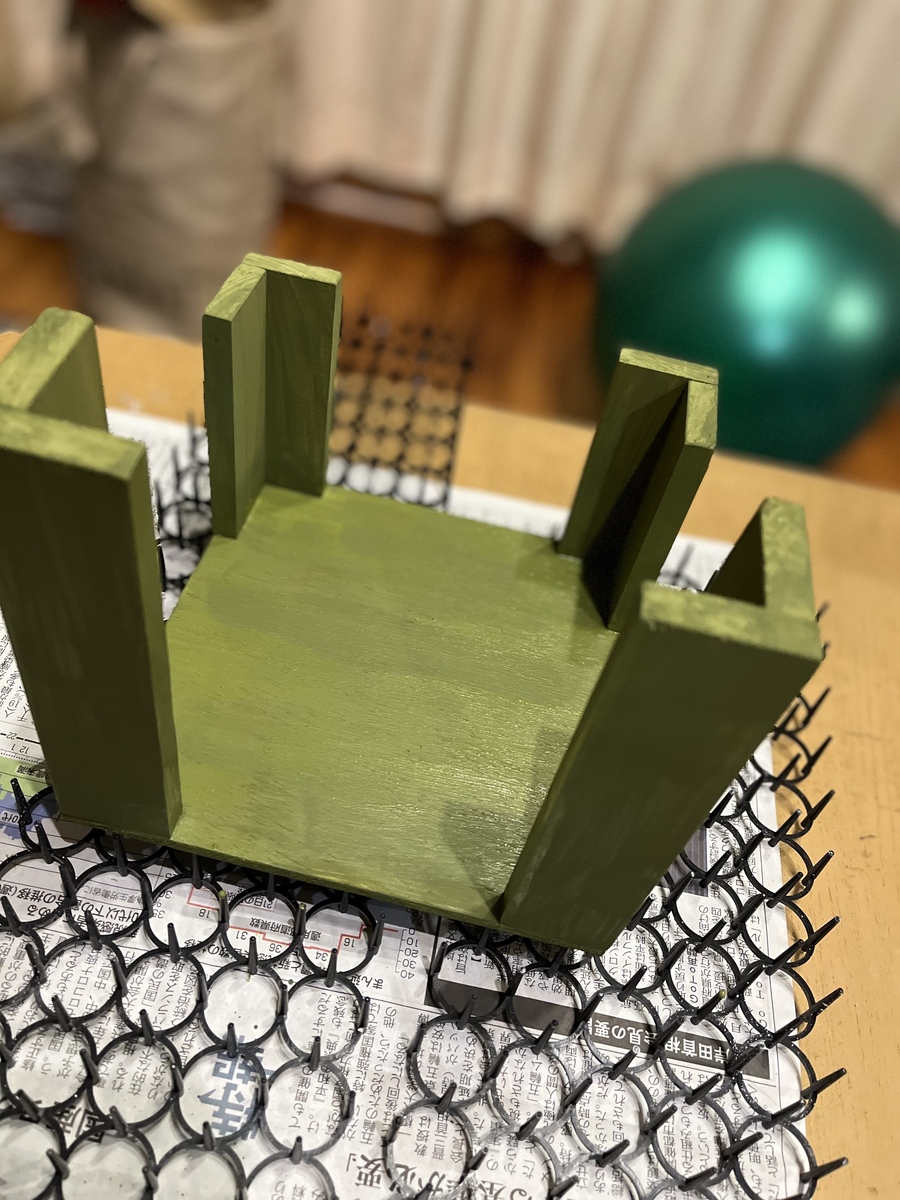 そして、柱と底板には我らがオリーブグリーン🫒で塗装。