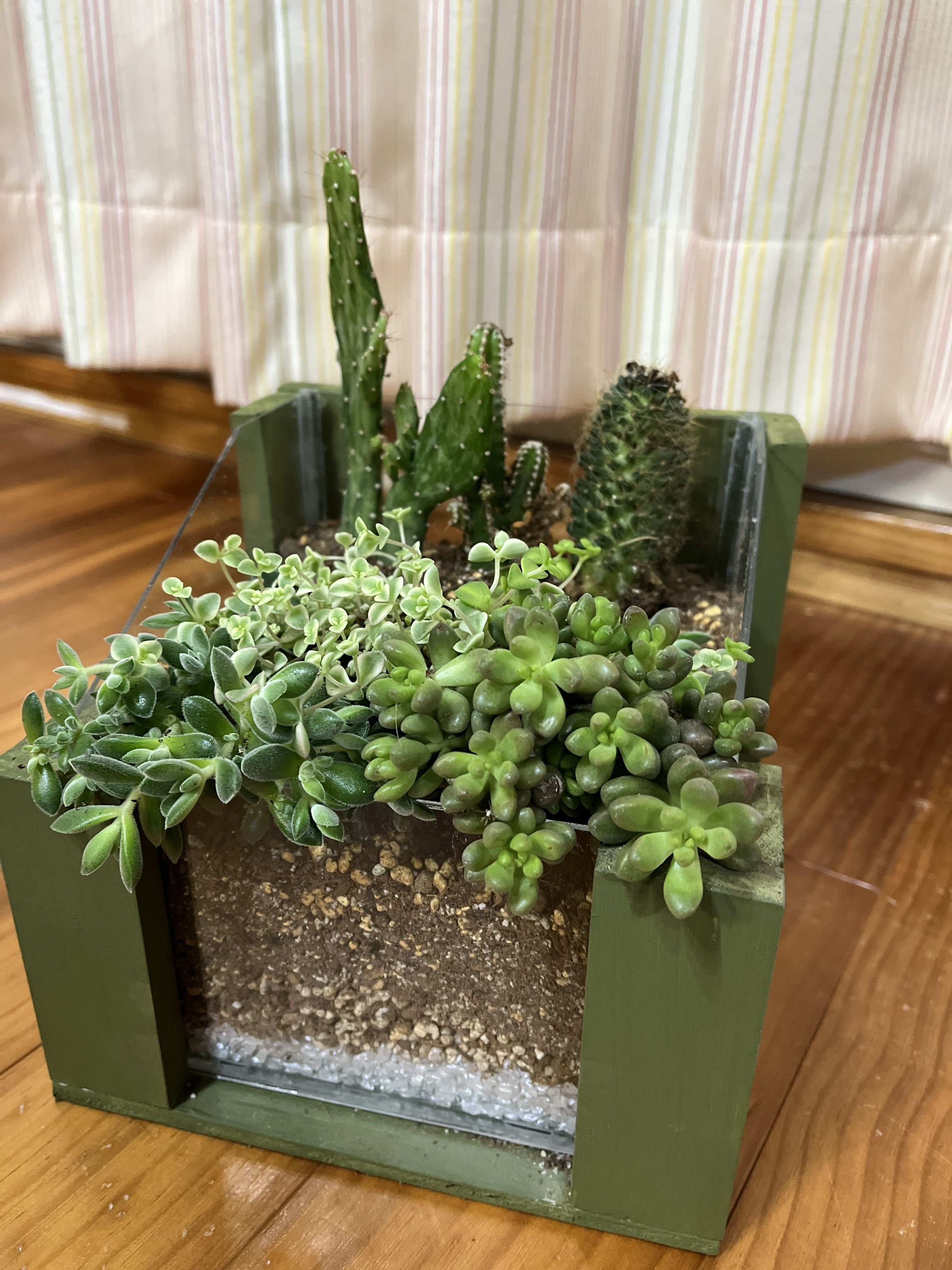 サボテンと多肉さんがアクリルの箱から見えるのもお洒落ですね🤩