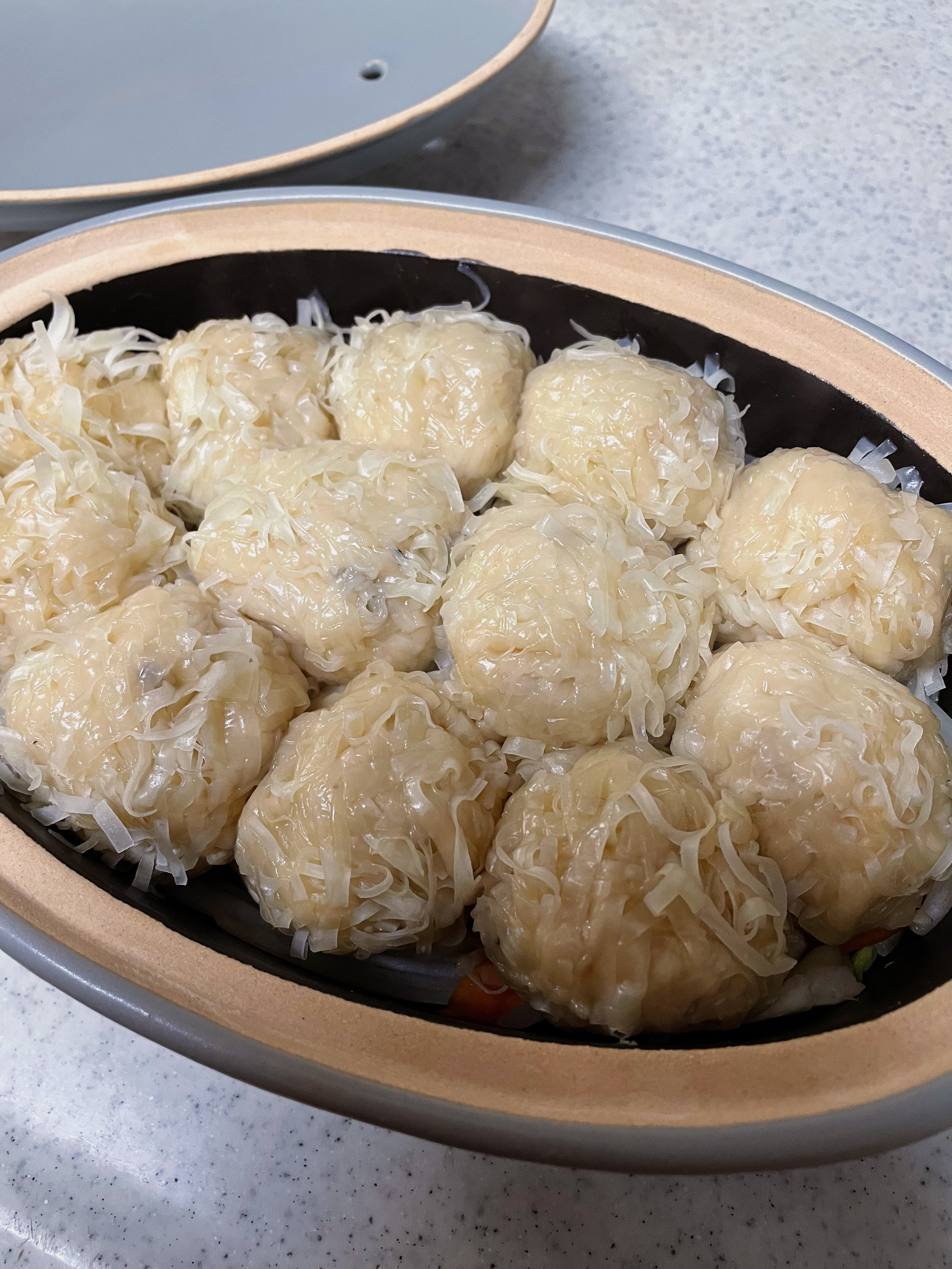 シュウマイをその上にのせて電子レンジで600W5〜6分ほどチンする