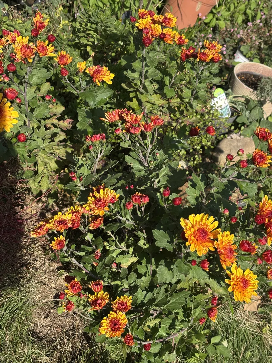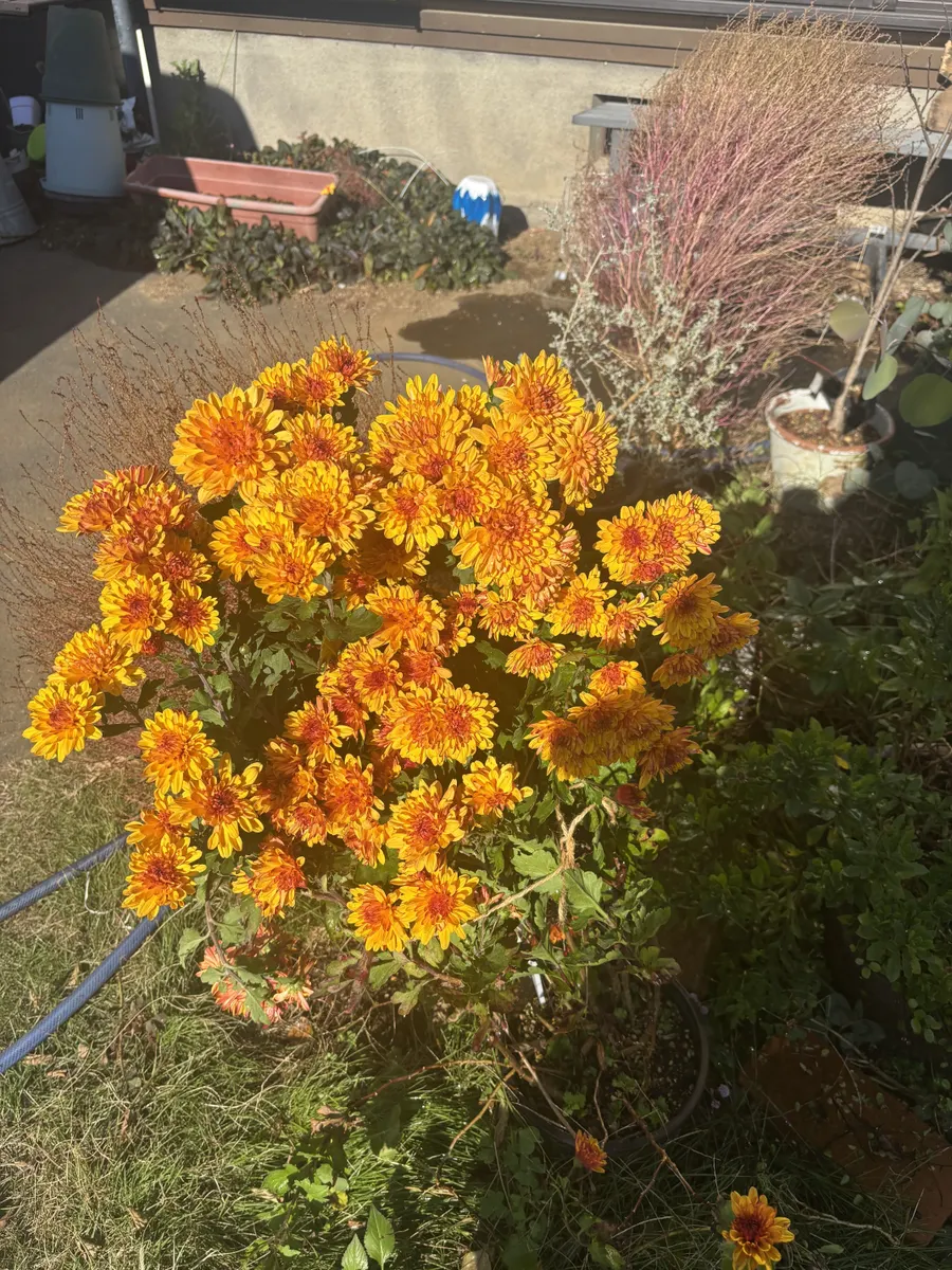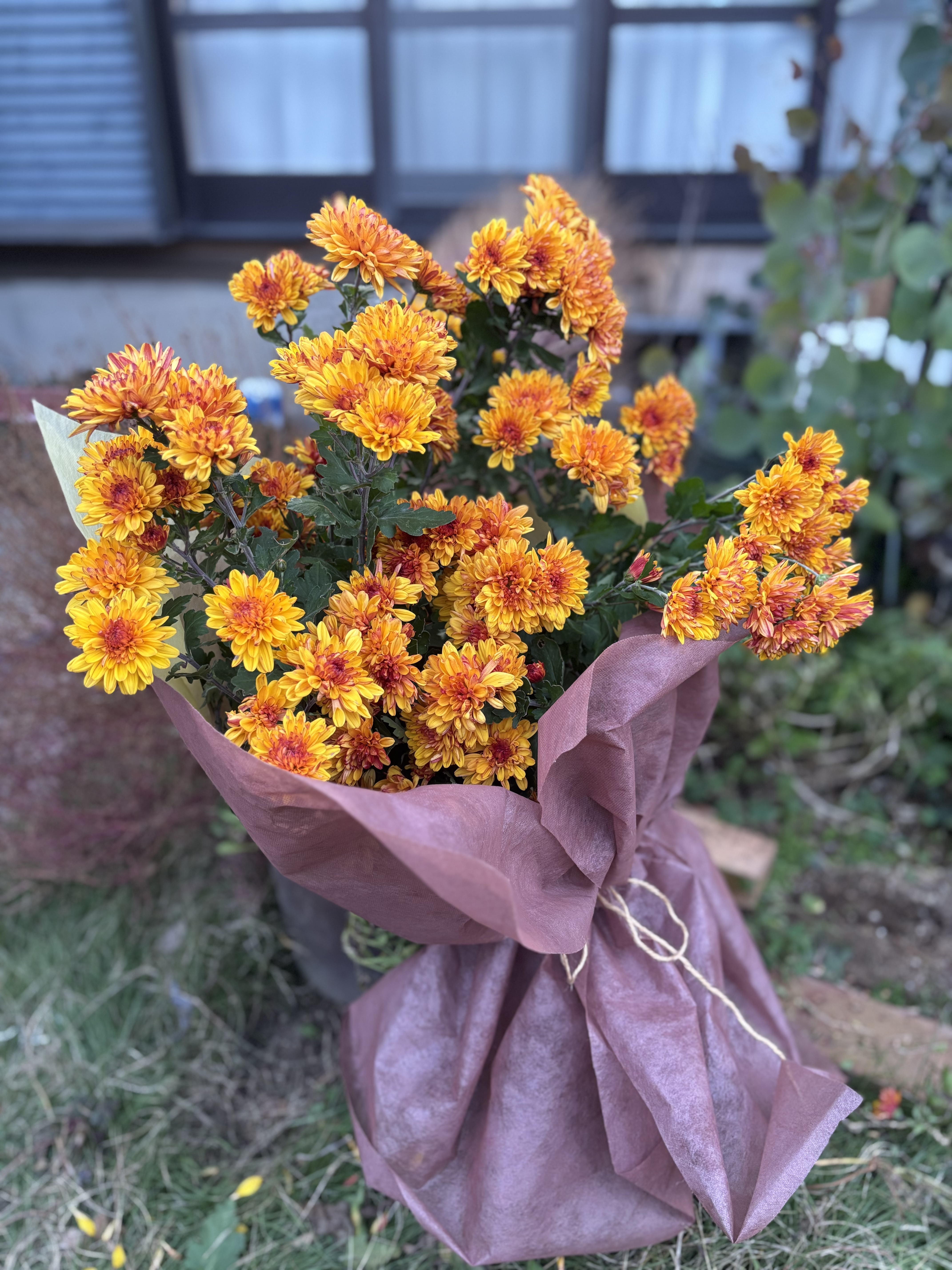 トップ > グリーン > キャンペーン > 鉢植えの菊を花束に マリーモミ 2025/11/15 19:07 鉢植えの菊を花束に ■作品内容 なんてことない菊の花があちらこちらに広がってたので鉢の上から包み紙で巻いてみました💐この菊は根がついてるので小さな鉢なのにこんなに咲いてます😅 花が咲く前に何もしなかったので広がってしまって💦 麻ひもでまとめてみたら閃きました。 ■工夫ポイント お花をもらった時の包み紙を材料して巻いてみました。 菊の花を触って折れた子達寂しい鉢に挿して🤭 庭が明るくなりました。 雨も降らなさそうなのでしばらく包んだままにします🤭 小さい秋見つけた いいね 共有する 共有する X LINE リンクをコピー コメントする 2 件の返信 (新着順) ミュートしたユーザーの投稿です。 投稿を表示 あにー 2025/11/16 08:17 わぁ、 ステキなアイデアですね💗💗 いいね 返信する ミュートしたユーザーの投稿です。 投稿を表示 マリーモミ 2025/11/16 09:01 あにー ありがとうです💘 今日は包み紙変えてみようかな?と思います🤭 いいね 返信する ミュートしたユーザーの投稿です。 投稿を表示 CHIE☆ 2025/11/15 21:59 可愛い🩷 お庭に花束💐素敵ですね😊 いいね 返信する ミュートしたユーザーの投稿です。 投稿を表示 マリーモミ 2025/11/15 23:19 CHIE☆ ありがとうございます😊 庭の花束見つけてもらって (。´艸`。)ㅋㅋㅋ いいね 返信する