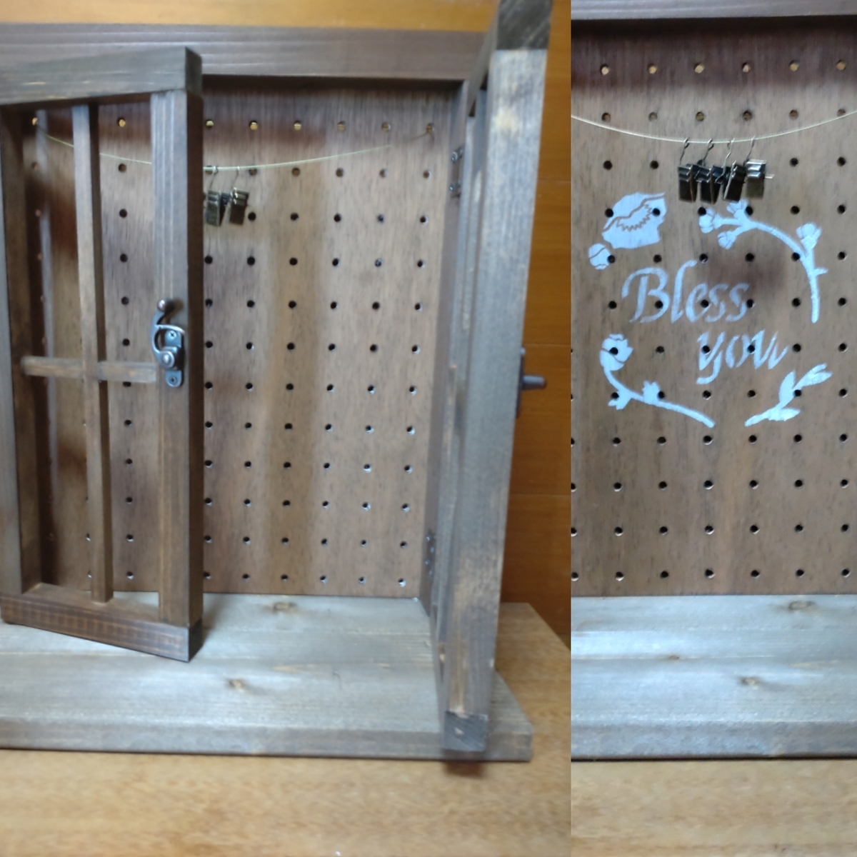 トップ > DIY > インテリア > 夏のDIY2022【窓型ウォールラック】 ちょこっぺ 2022/08/30 20:57 夏のDIY2022【窓型ウォールラック】 窓型ウォールラックを作ってからのアレンジをしてみました✌️ WSの物は扉が固定されていたので、皆さんの作品を参考に私も丁番を付けて開閉するようにして、打掛で止まるようにしました😊 そして、有孔ボードも薄く塗ってからのステンシル✨クリップのついたワイヤーガーランドを付けて完成‼️ 犬🐶のお散歩に行くのに、しょっちゅう鍵🔐を探している母にあげました😅。ここに置く習慣がついてくれたらいいなぁ😁 いいね 共有する 共有する X LINE リンクをコピー コメントする 1 件の返信 (新着順) ミュートしたユーザーの投稿です。 投稿を表示 Lulu 2022/08/30 21:31 私は見本通り作ったけど娘がちょこっぺさんと全く同じ事考えていて、帰りにセリアで同じもの買って帰りましたよ😆 いいね 返信する ミュートしたユーザーの投稿です。 投稿を表示 ちょこっぺ 2022/08/30 21:45 外側から丁番が見えないように付けるのに苦戦しました😅 これ、かわいいですよね✨また先着順だったから、1番目の組に入れるよう、張りきって行っちゃいました😅 いいね 返信する