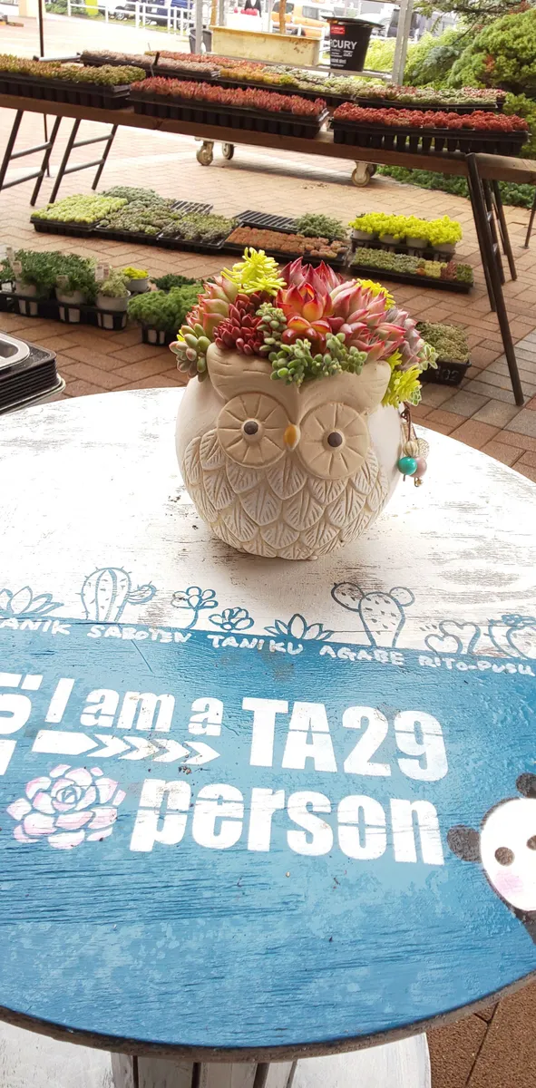 白いフクロウさんにカラふるな多肉が映えてとても素敵な寄植えでしたよねー💕