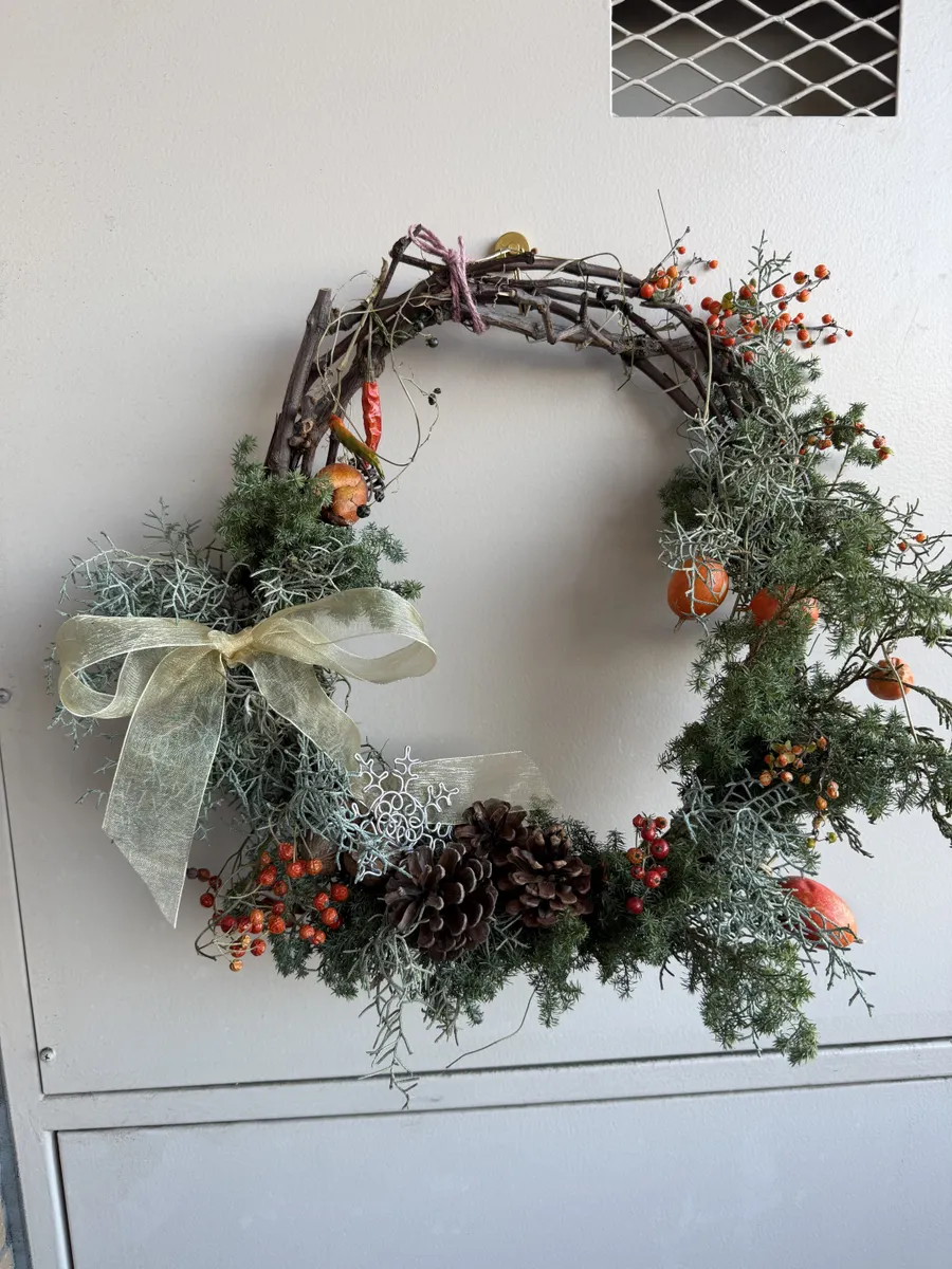 里山の恵みがギュッと詰まった素敵なリースですね😍